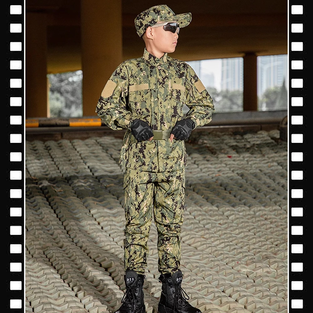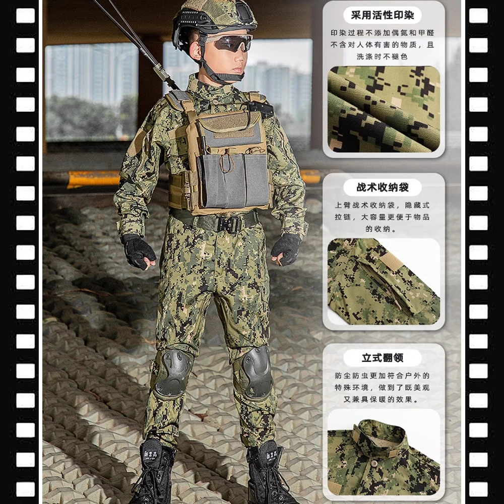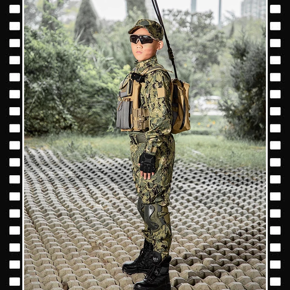 Conjunto de uniforme de entrenamiento militar para niños Traje de camuflaje para niños, pantalones y equipo táctico Disfraz de combate de las fuerzas especiales de la jungla para niños y niñas