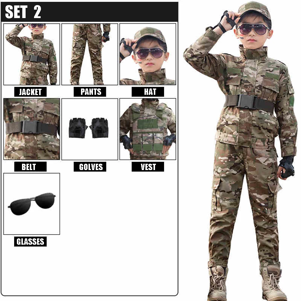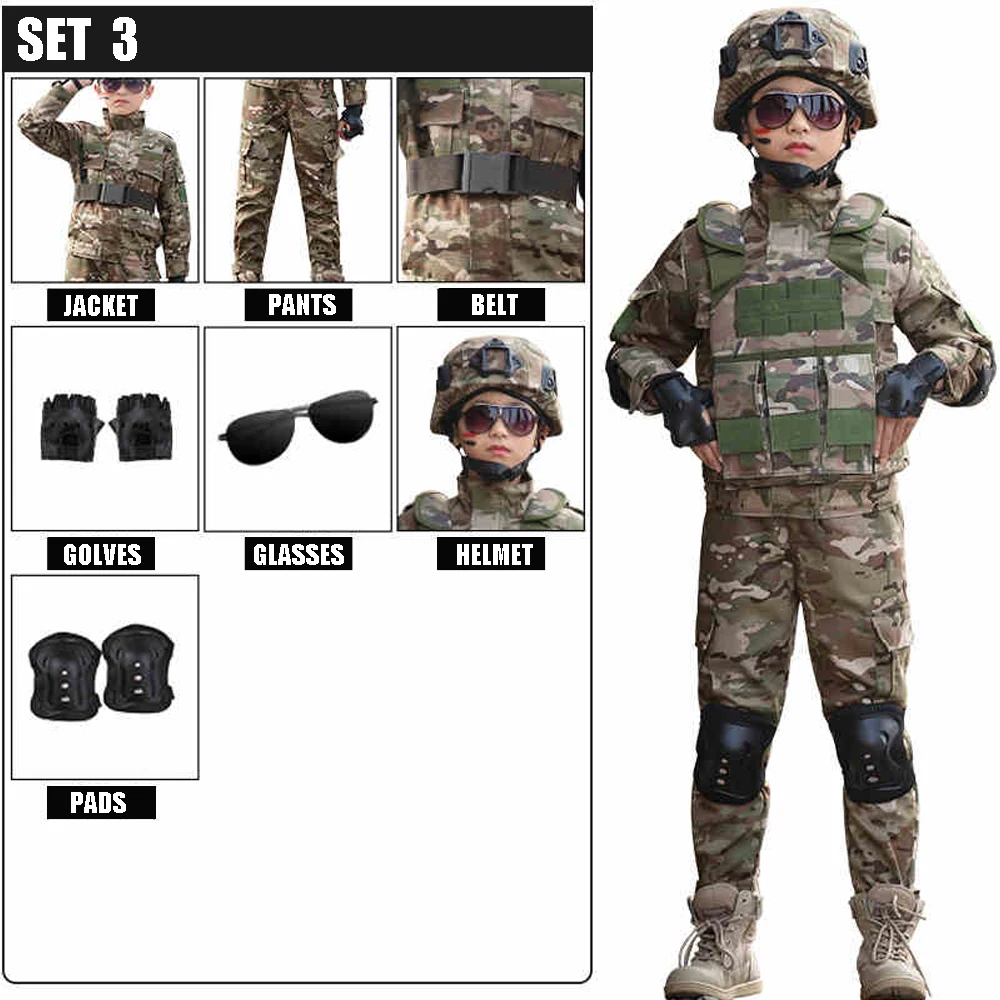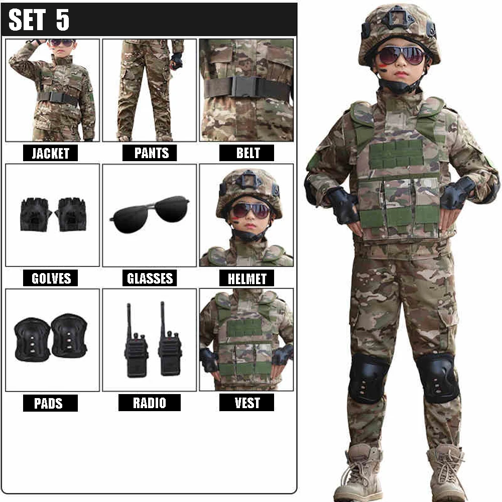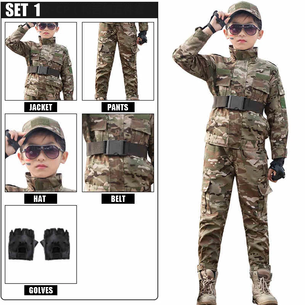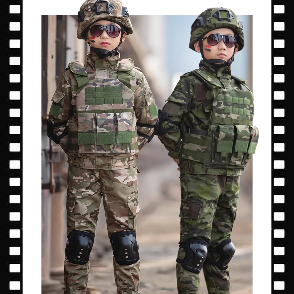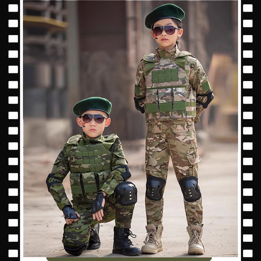 Conjunto de uniforme de entrenamiento táctico militar para niños y niñas, Top de camuflaje, pantalones, traje con equipo de combate, disfraz de fuerzas especiales para chico