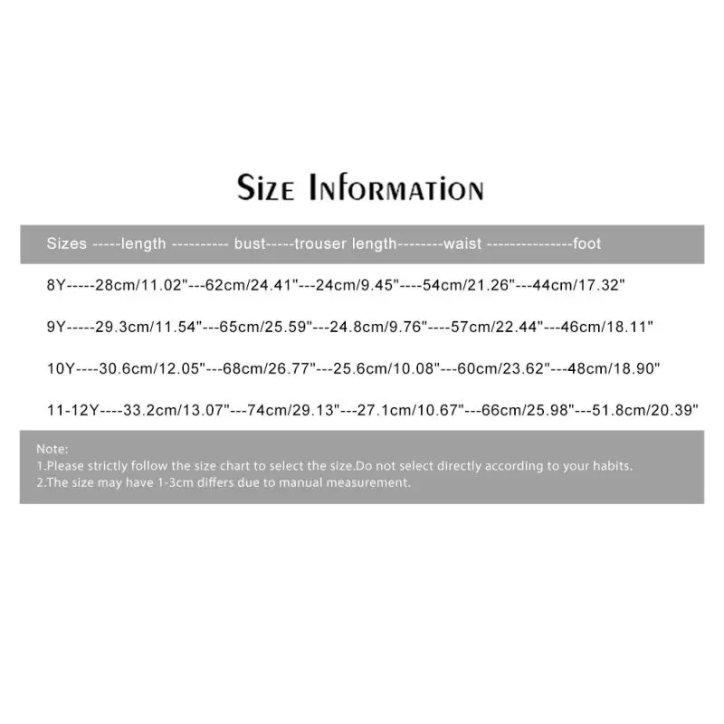 Tamaños: 8Y, 9Y, 10Y, 11Y, 12Y