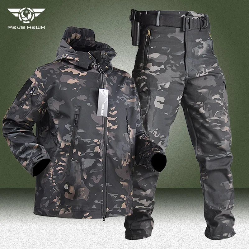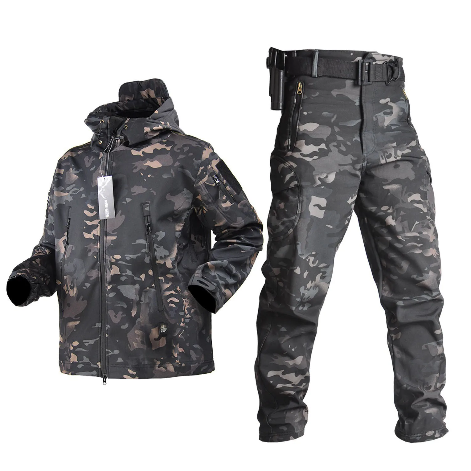 Conjuntos de camuflaje militar para hombre, chaquetas tácticas de concha suave y cálida, pantalones impermeables a prueba de viento para exteriores, trajes de piloto de vuelo del ejército, Invierno