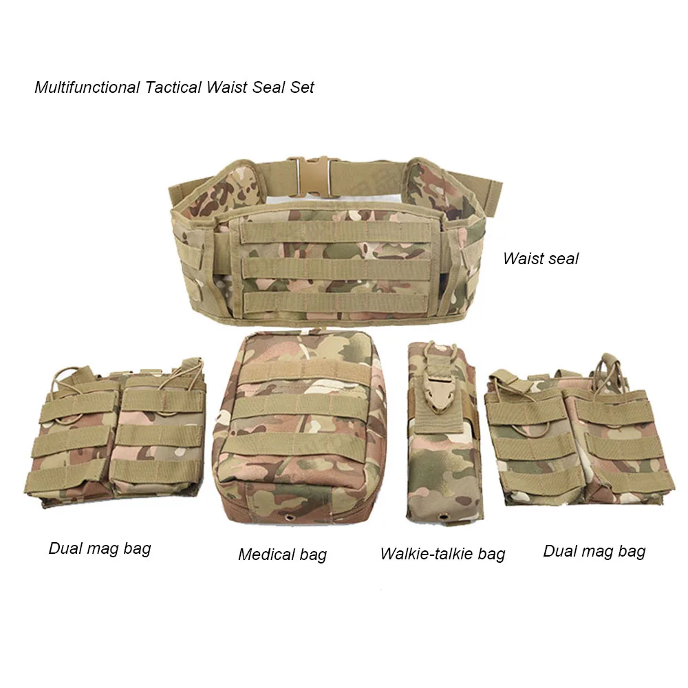 Juegos de cinturones de batalla para caza al aire libre Cinturones de servicio Cinturón Molle táctico multifuncional para aplicación de la ley con bolsas de accesorios