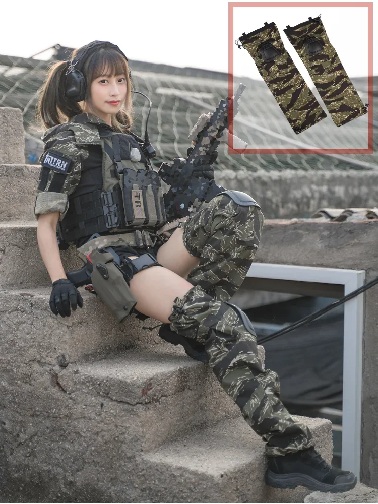 Conjuntos de piernas de camuflaje táctico, calentadores de rodilla tácticos con función de juego de marea, calentadores de piernas multicolores