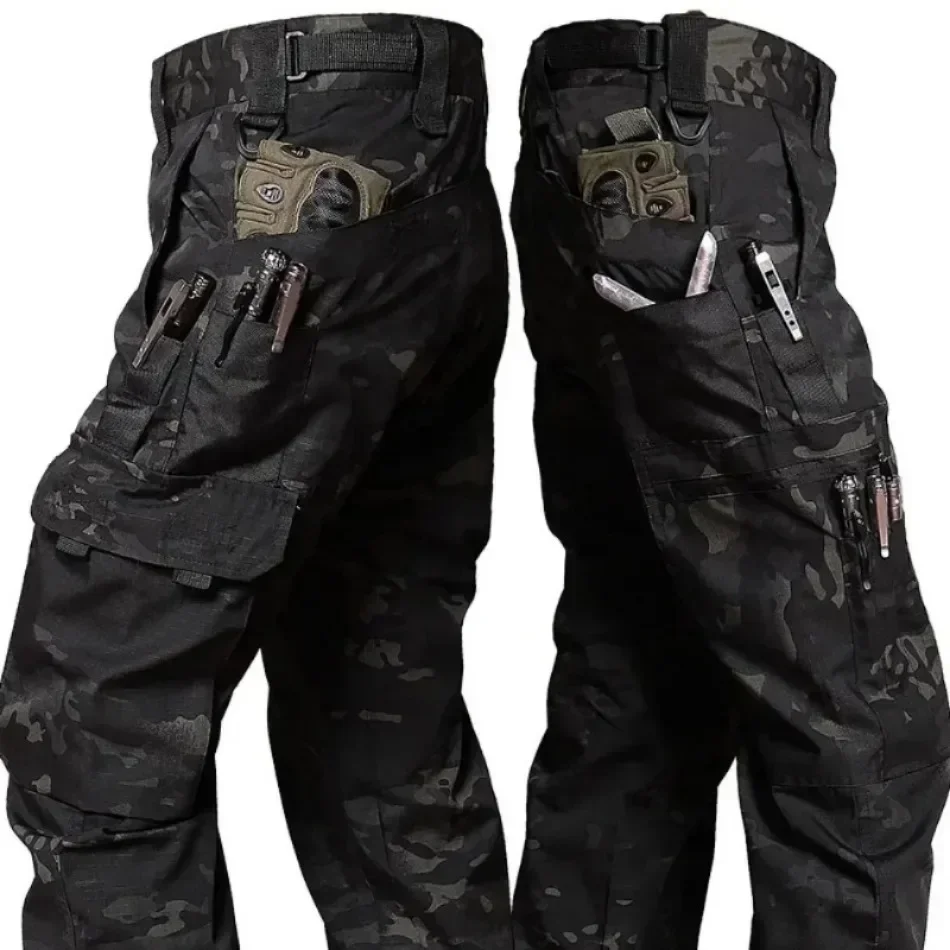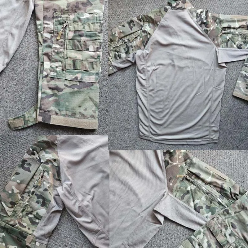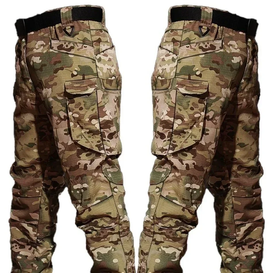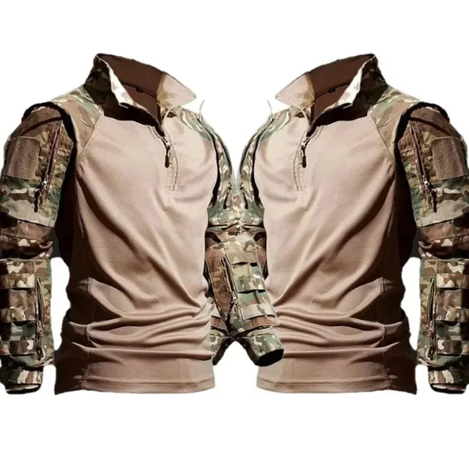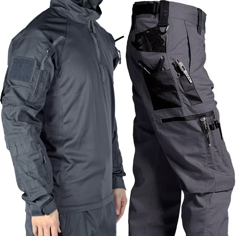 Conjuntos tácticos de camisas tácticas para hombre, camiseta de manga larga transpirable para exteriores + pantalón impermeable, conjunto de carga multibolsillo de camuflaje, 2 uds.