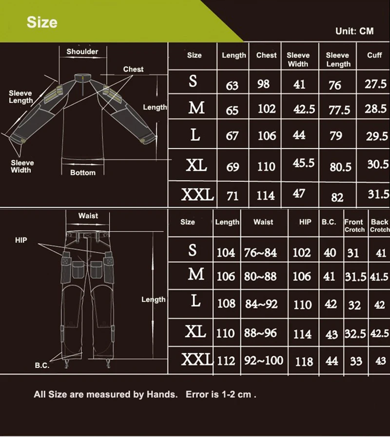 1. Material: 65/35 P/C material Ripstop y 95% algodón 5% Spanx