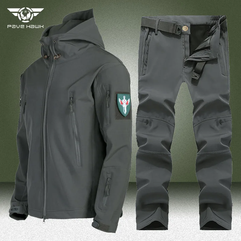 Conjuntos tácticos impermeables para hombre, chaqueta polar de concha suave + Pantalones, 2 piezas, trajes de combate militares a prueba de viento, piel de tiburón