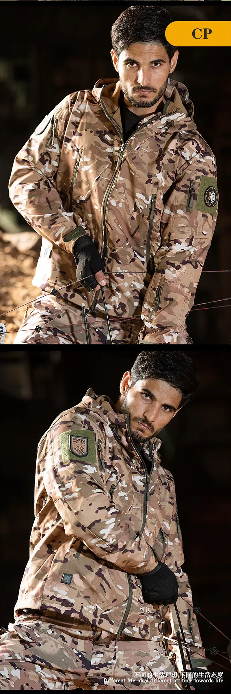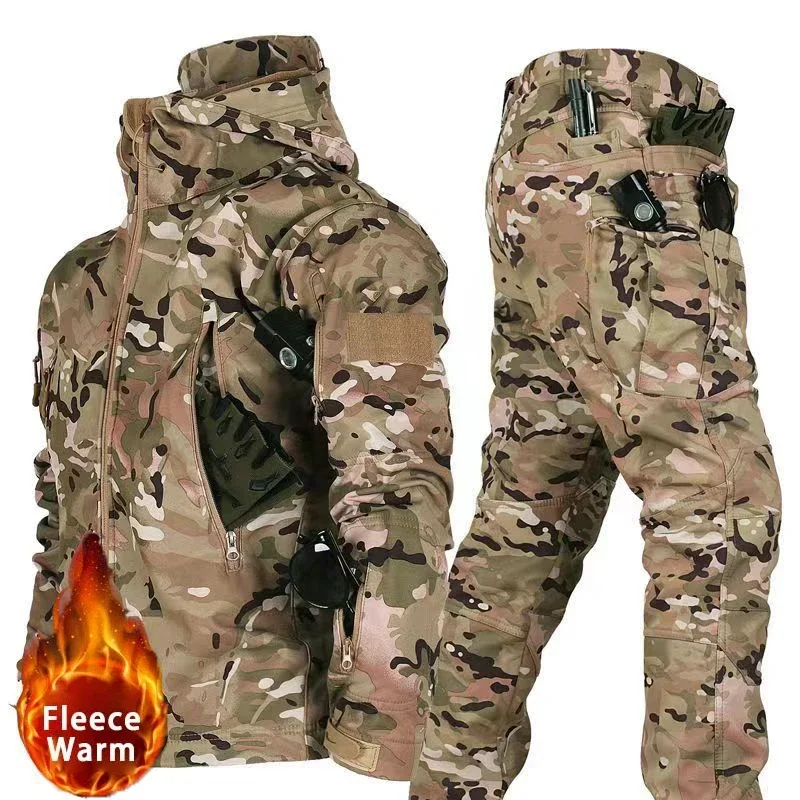 Conjuntos tácticos de invierno para hombre, ropa de trabajo al aire libre, chaquetas de lana, chaqueta con capucha suave impermeable y cálida, pantalón Cargo con múltiples bolsillos, 2 uds.
