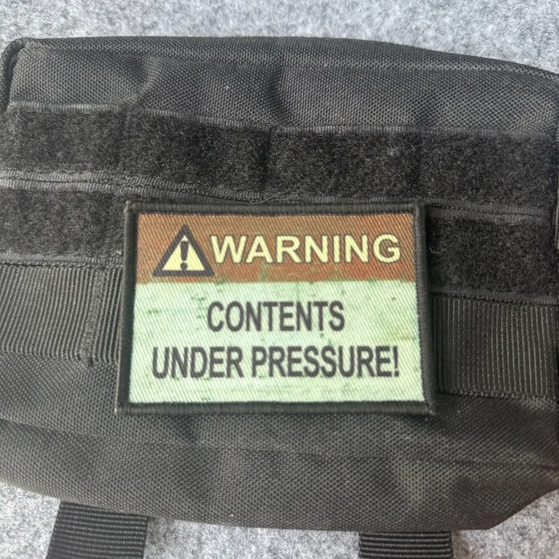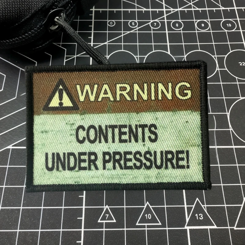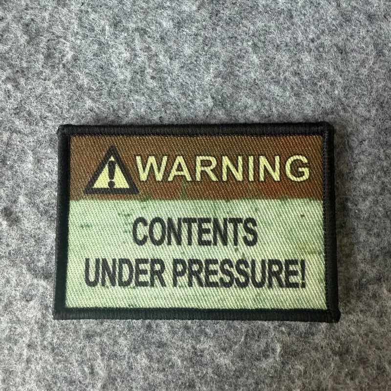 ¡Contenido de advertencia bajo presión! Parche táctico con gancho y bucle, insignia de moral, parche militar para mochila