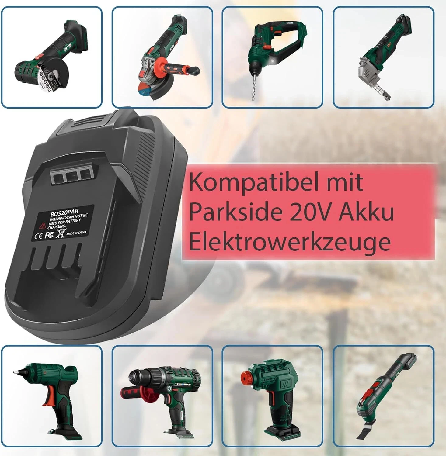 Parte superior del convertidor: Compatible con la batería de iones de litio Parkside PAP 20 A1, PAP 20 A3, PAP 20 B1, PAP 20 B3 20V XTeam.