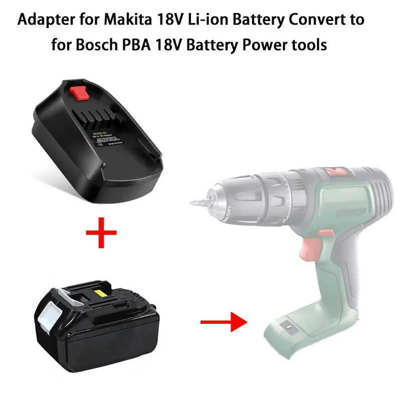 Este adaptador puede hacer que las baterías de litio enumeradas se utilicen para herramientas eléctricas inalámbricas de LITIO BOSCH de 18 V y le permite disfrutar de los beneficios del tiempo de funcionamiento prolongado de las baterías de iones de litio en sus herramientas de 18 V existentes.