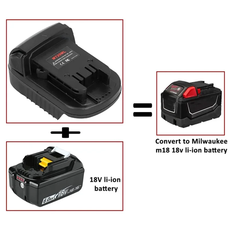 Conversión de batería: las baterías son intercambiables, convierte la batería de litio MAKITA de 18V a la batería de litio Milwaukee de 18V, práctica de usar