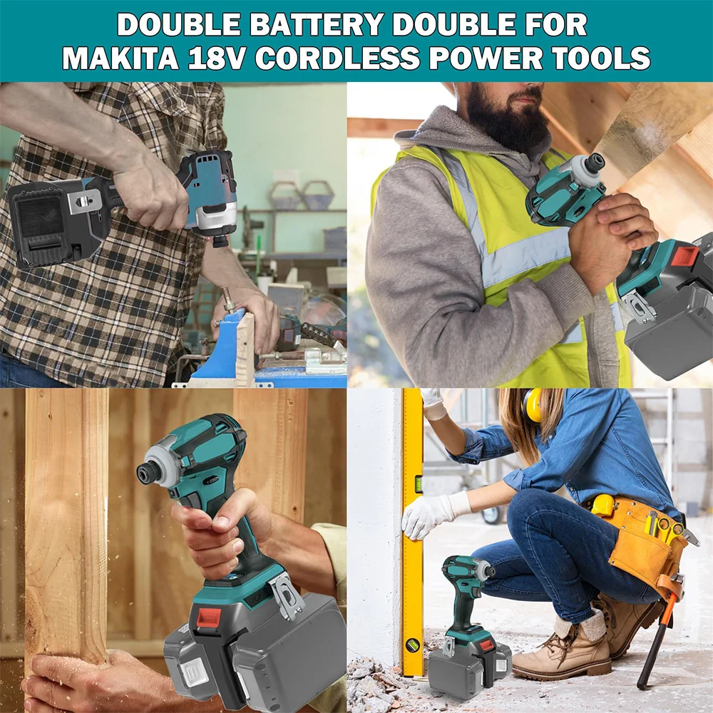 【Convertidor de batería uno a dos】Este convertidor de batería 2 en 1 le permite instalar 2 baterías, extendiendo la vida útil general de la batería de su taladro, llave o luz de trabajo Makita.Con este convertidor, puede alimentar sus herramientas de manera eficiente durante períodos prolongados de tiempo sin preocuparse por quedarse sin batería.