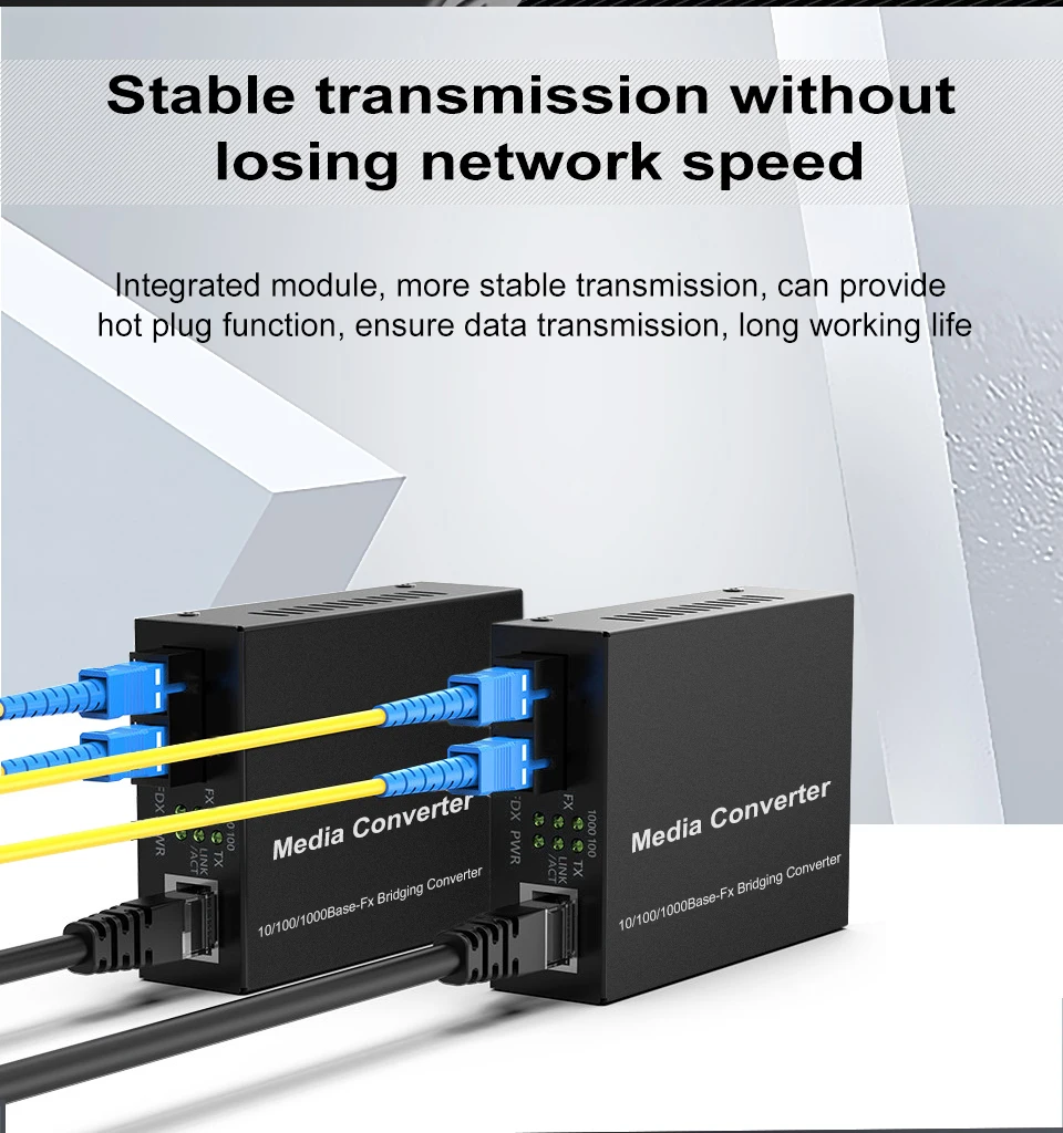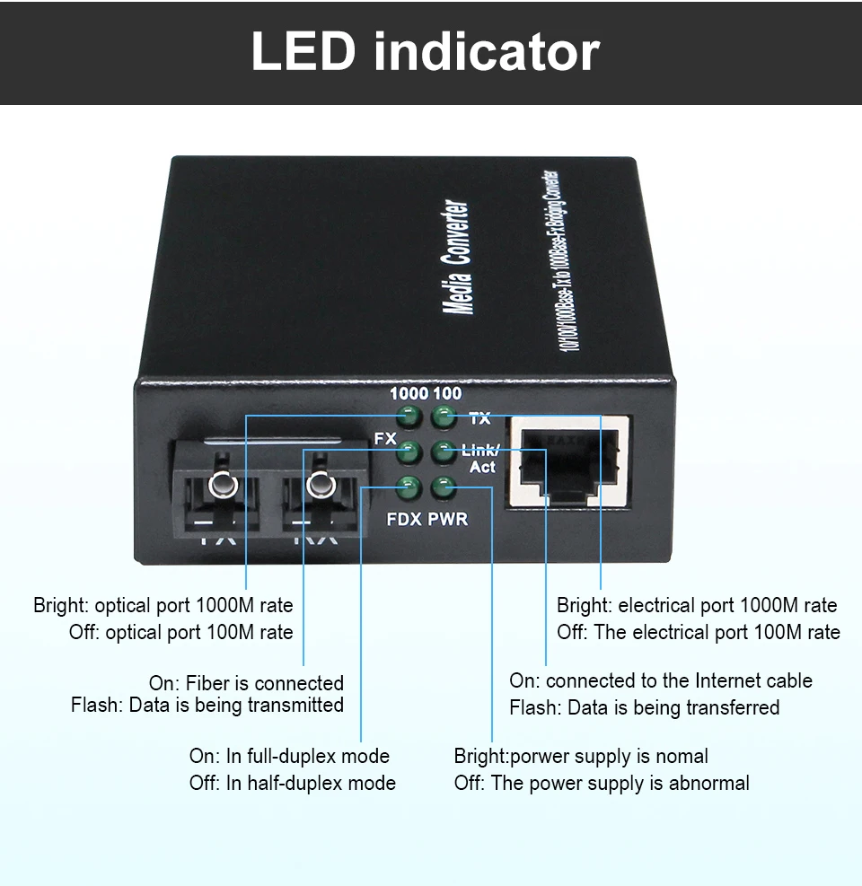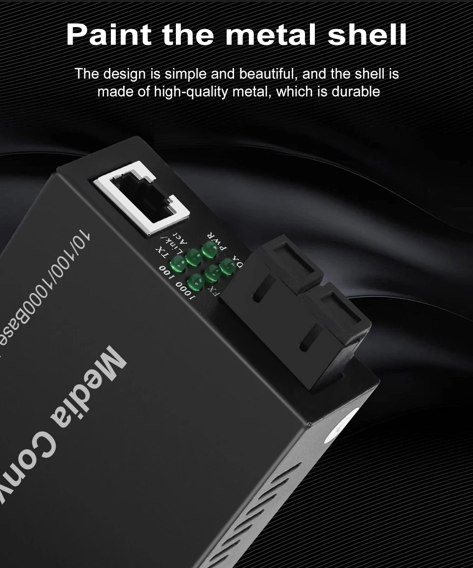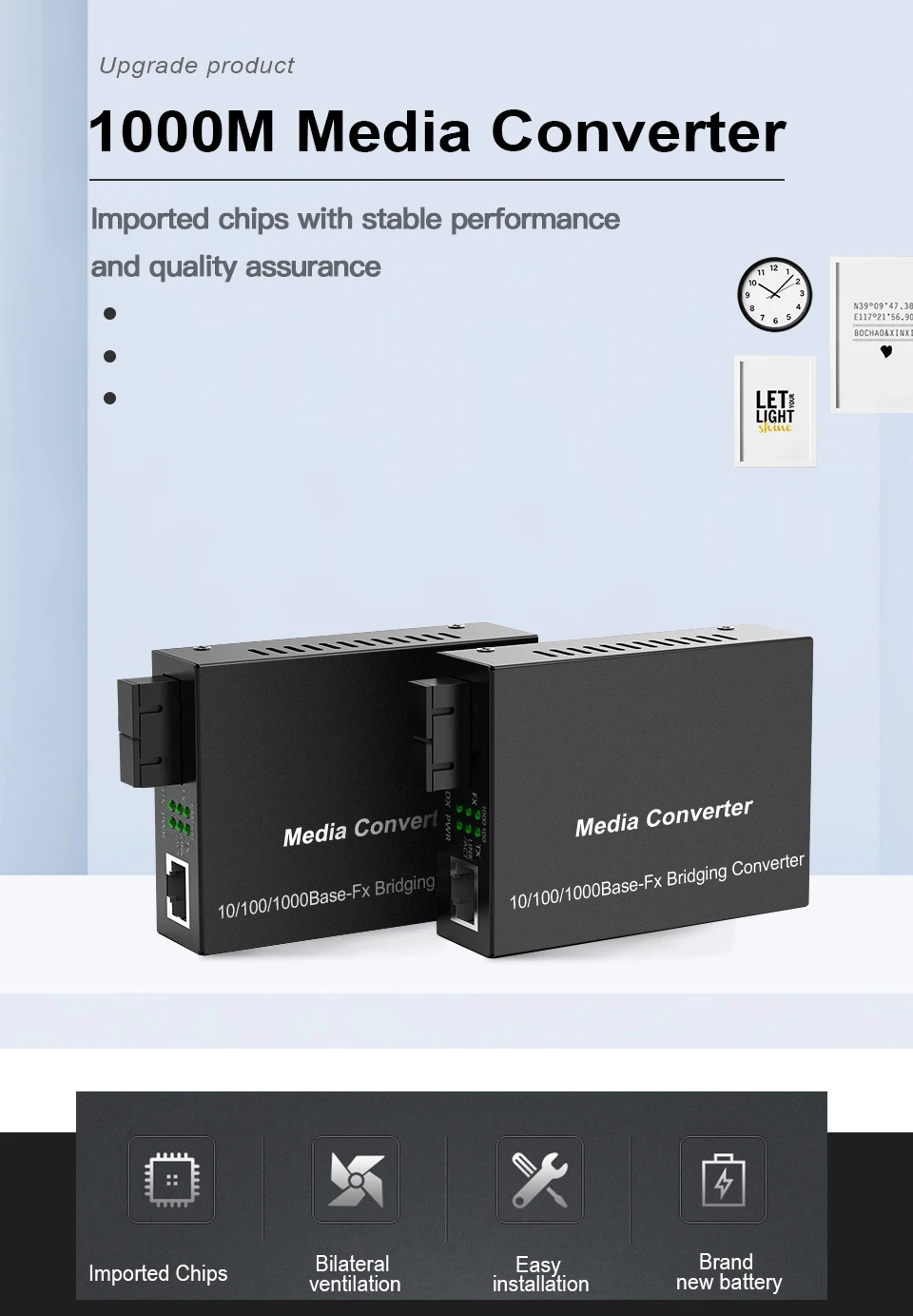 Convertidor de medios de fibra Gigabit Ethernet con transceptor SC multimodo incorporado de 1 Gb, 10/100/1000 M RJ45 a 1000Base-LX, hasta 2 km