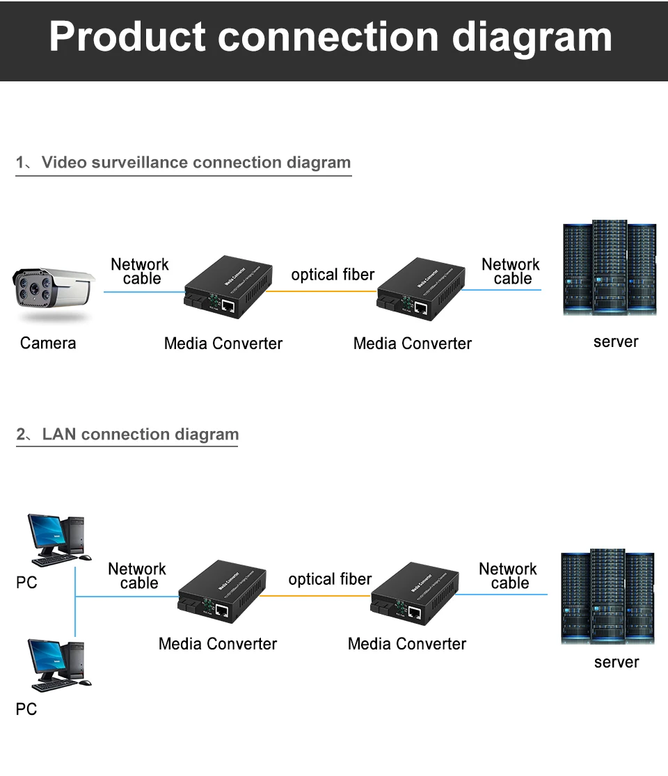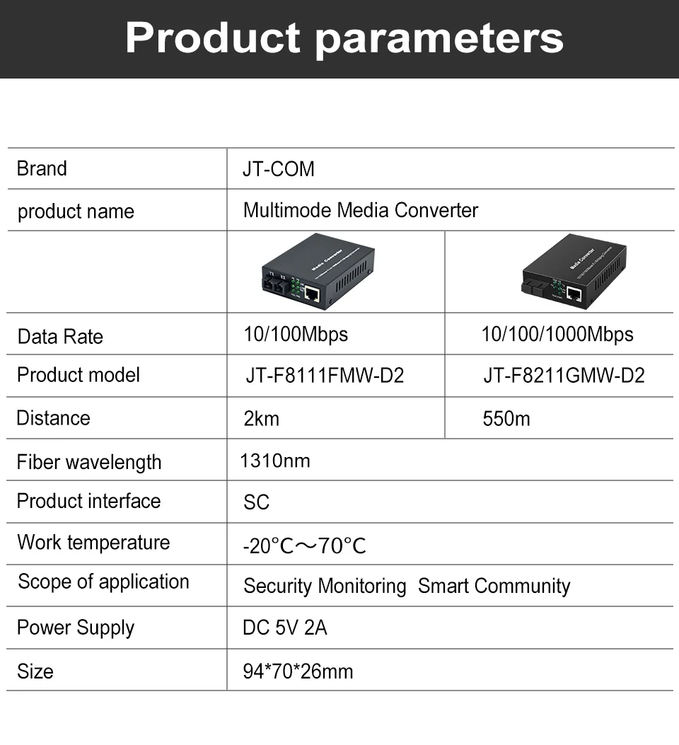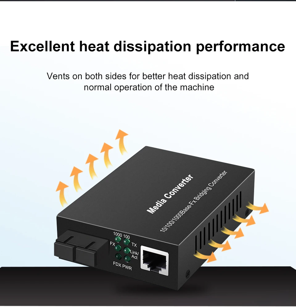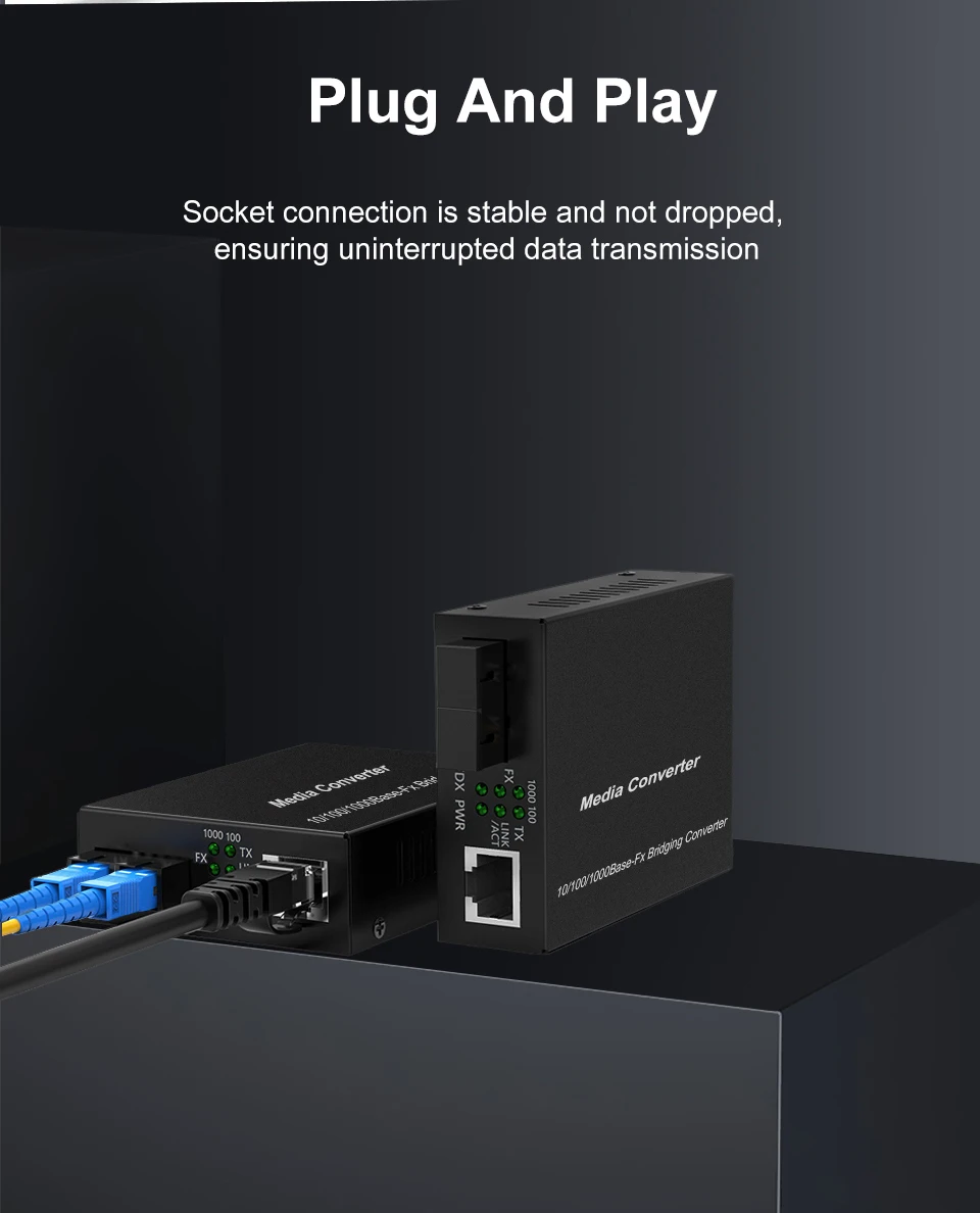 Convertidor de medios de fibra Gigabit Ethernet con transceptor SC multimodo incorporado de 1 Gb, 10/100/1000 M RJ45 a 1000Base-LX, hasta 2 km