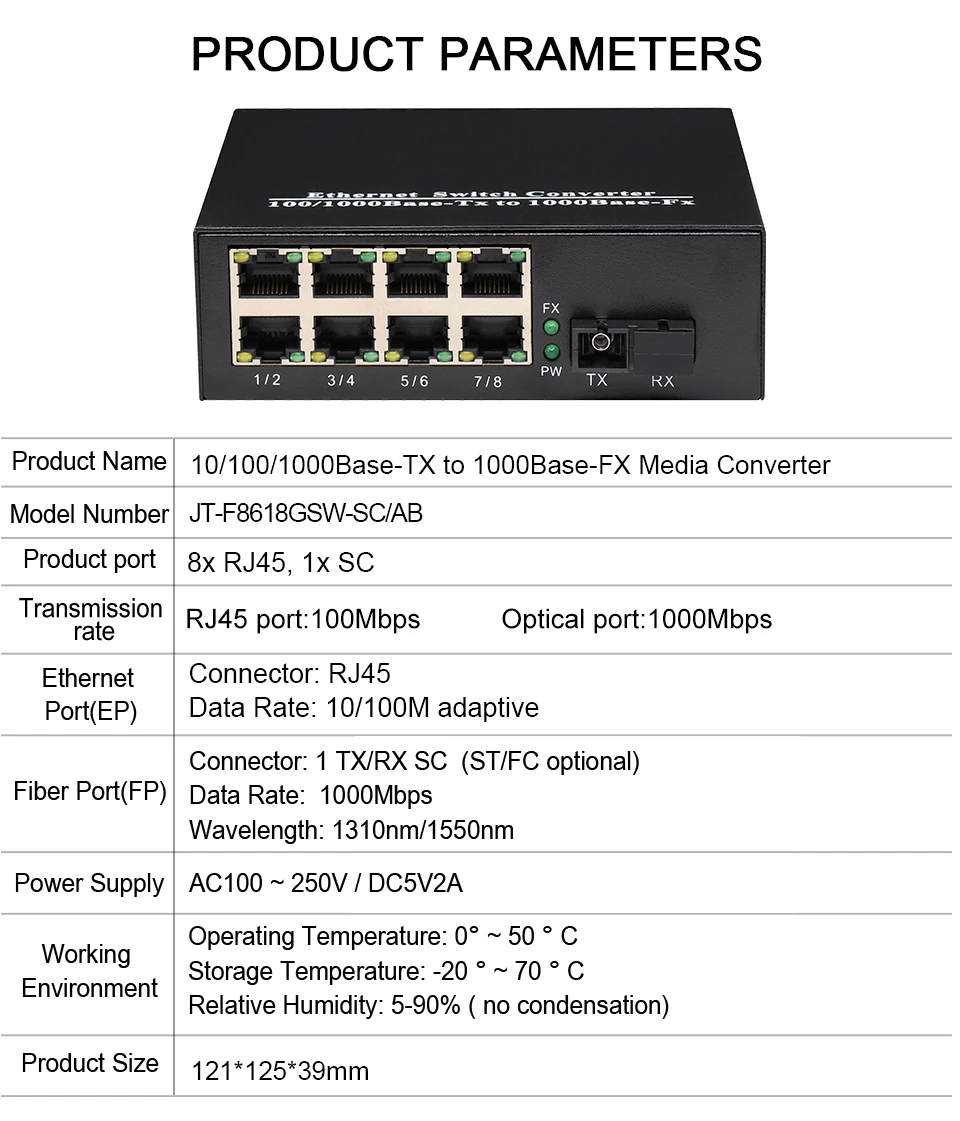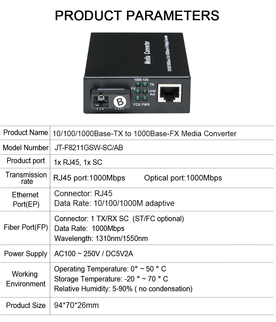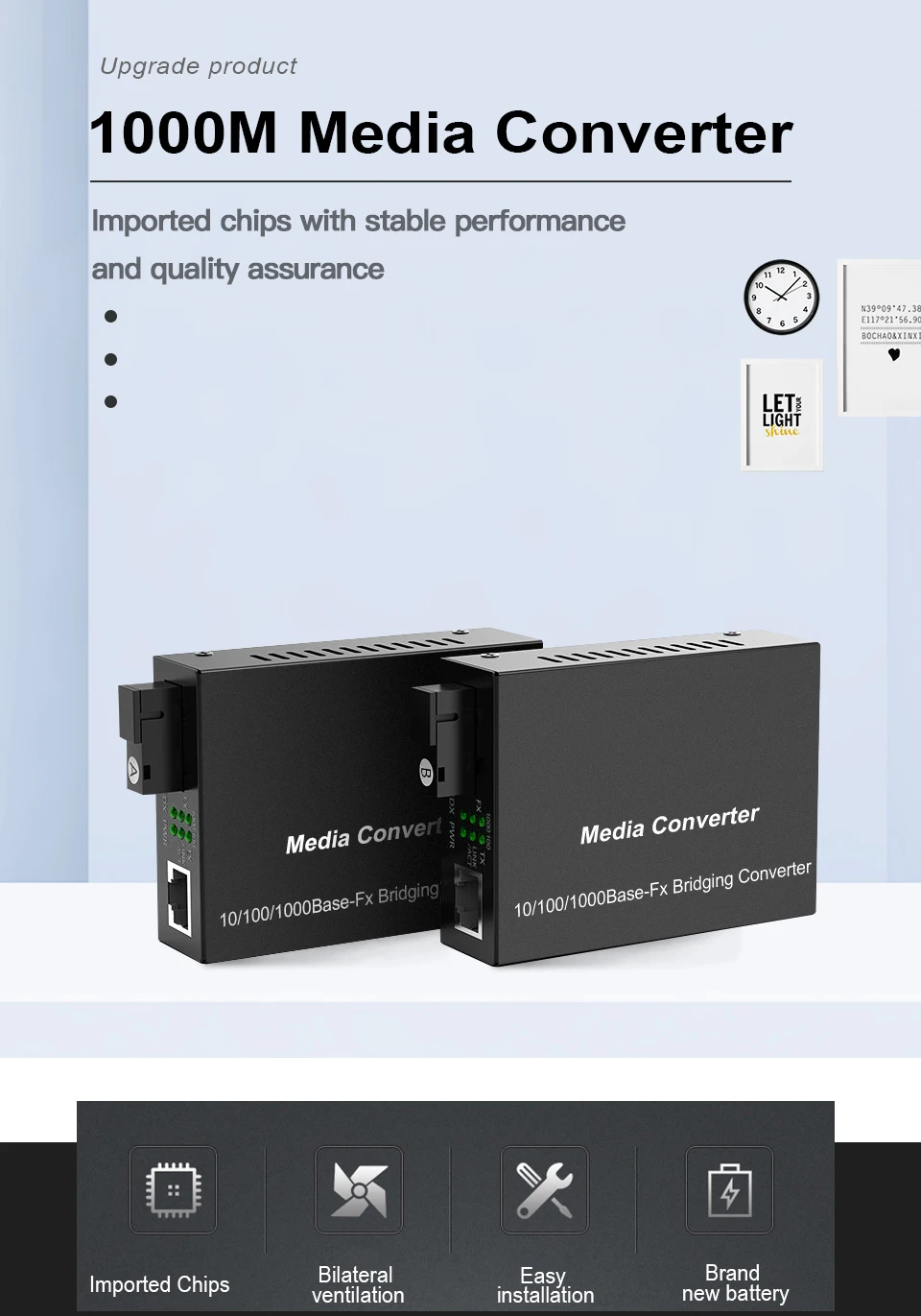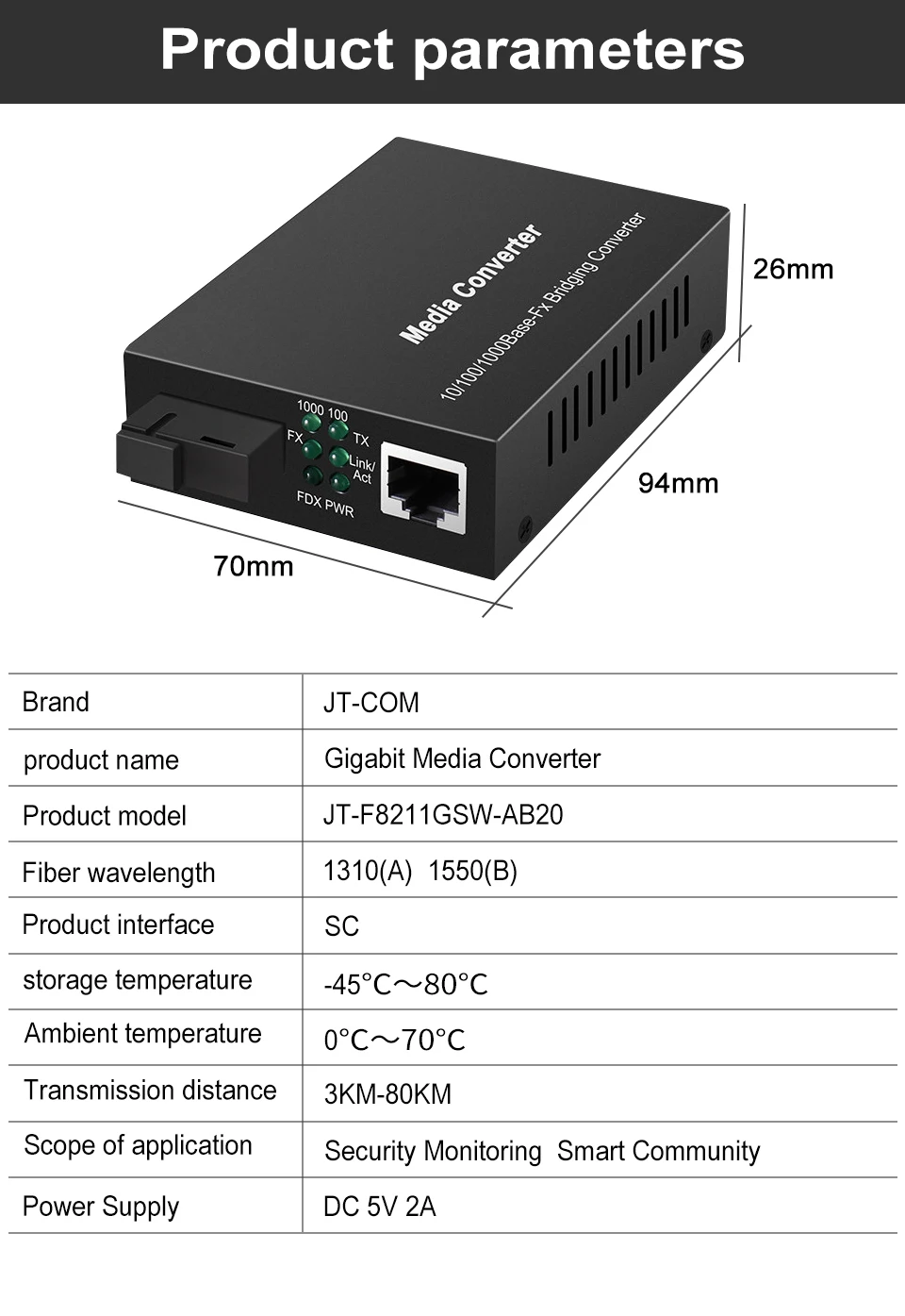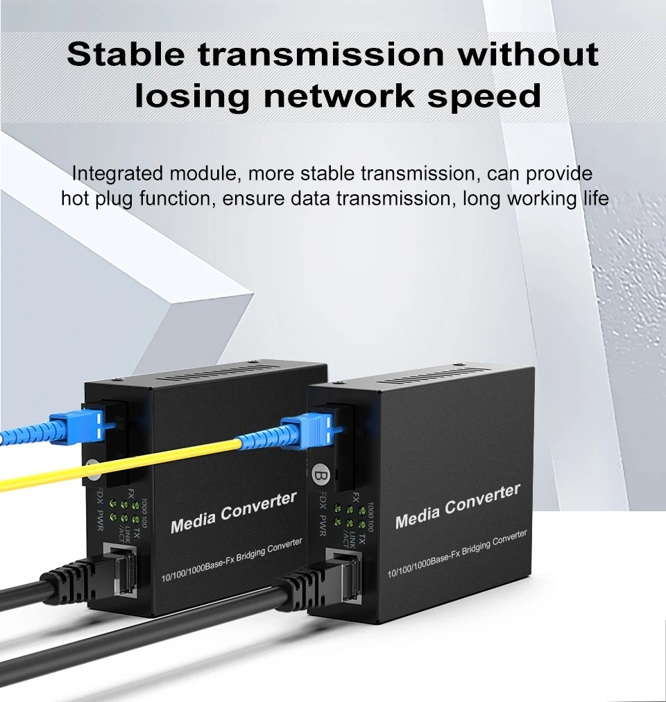 Convertidor de medios Gigabit de 20 40KM, fibra óptica a Rj45, monomodo, interruptor Ethernet de fibra óptica, transceptor 10/100/1000M SM