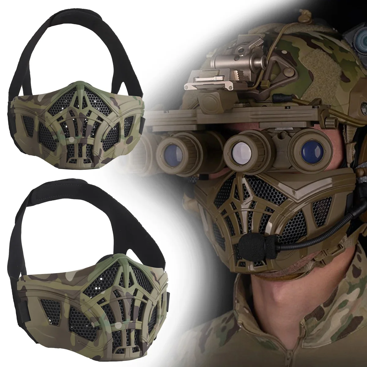★Fácil de combinar: la media máscara puede equiparse con gafas, casco táctico, auriculares, etc.con varios equipos tácticos.