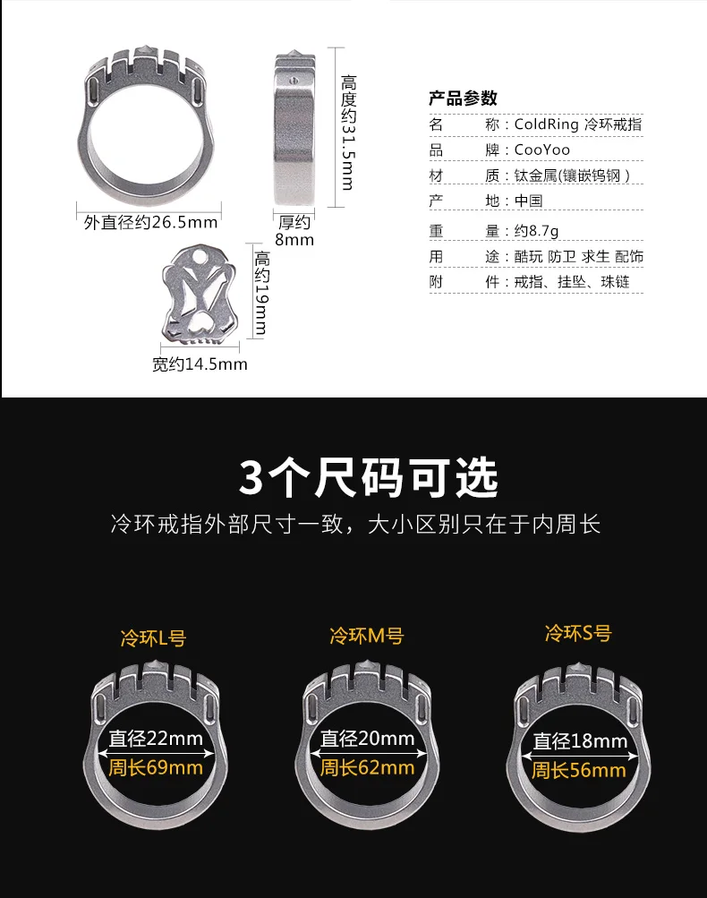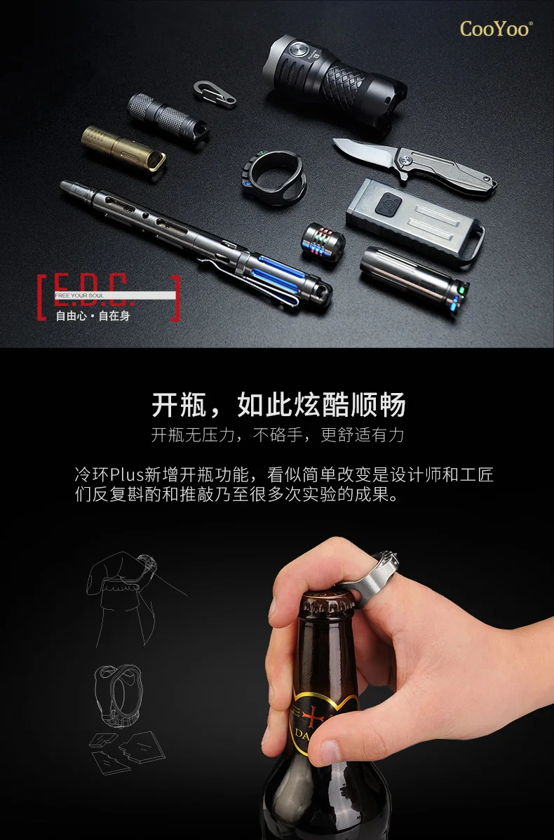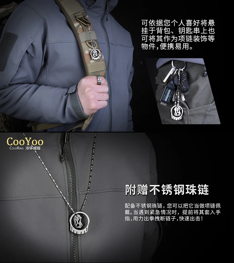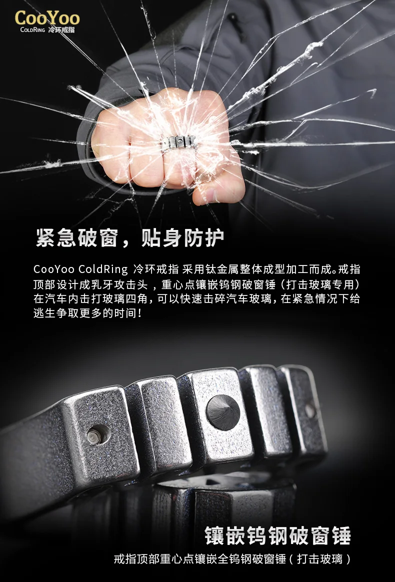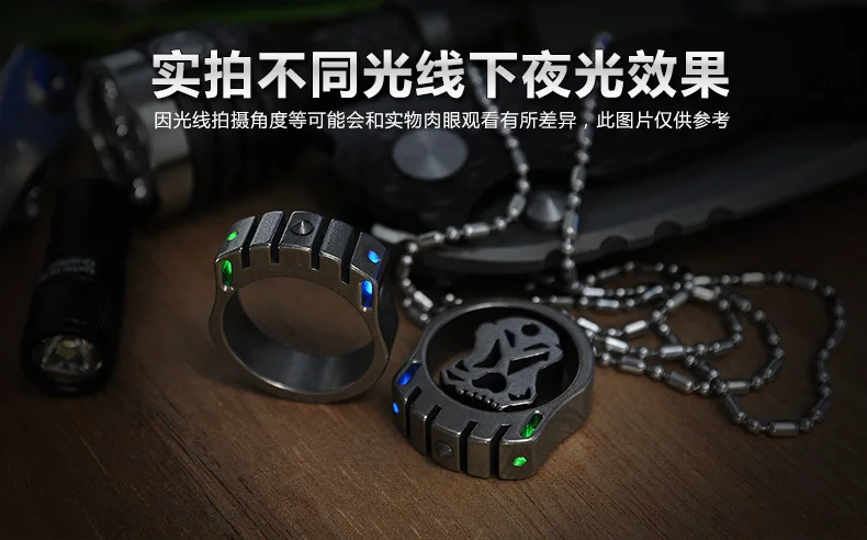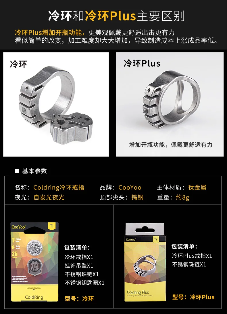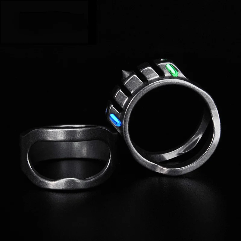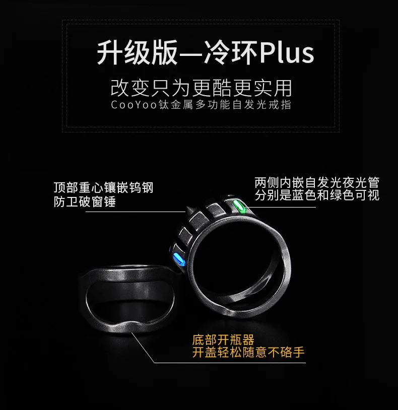 CooYoo-anillo frío/frío Plus, anillo de autodefensa, anillo de aleación de titanio Edc, autoluminoso, con incrustaciones de titanio, Cabeza de Acero de tungsteno