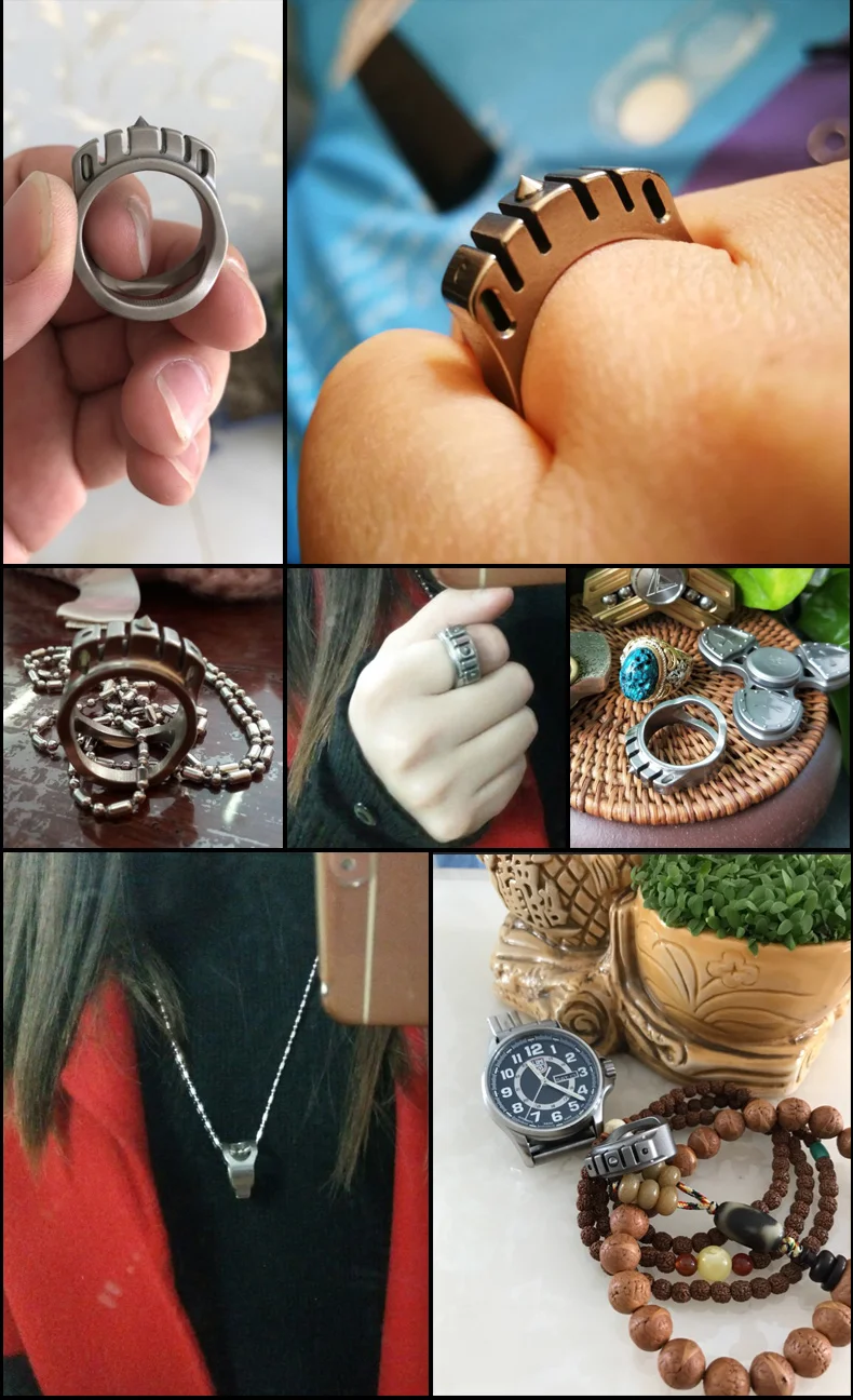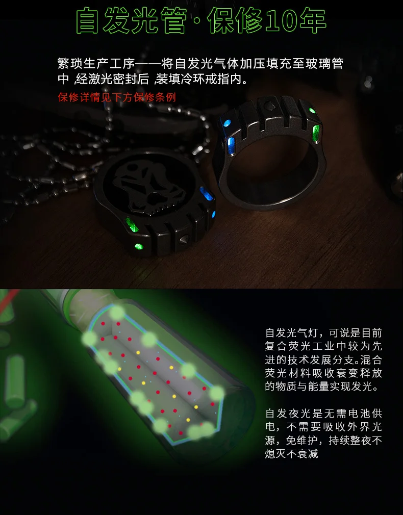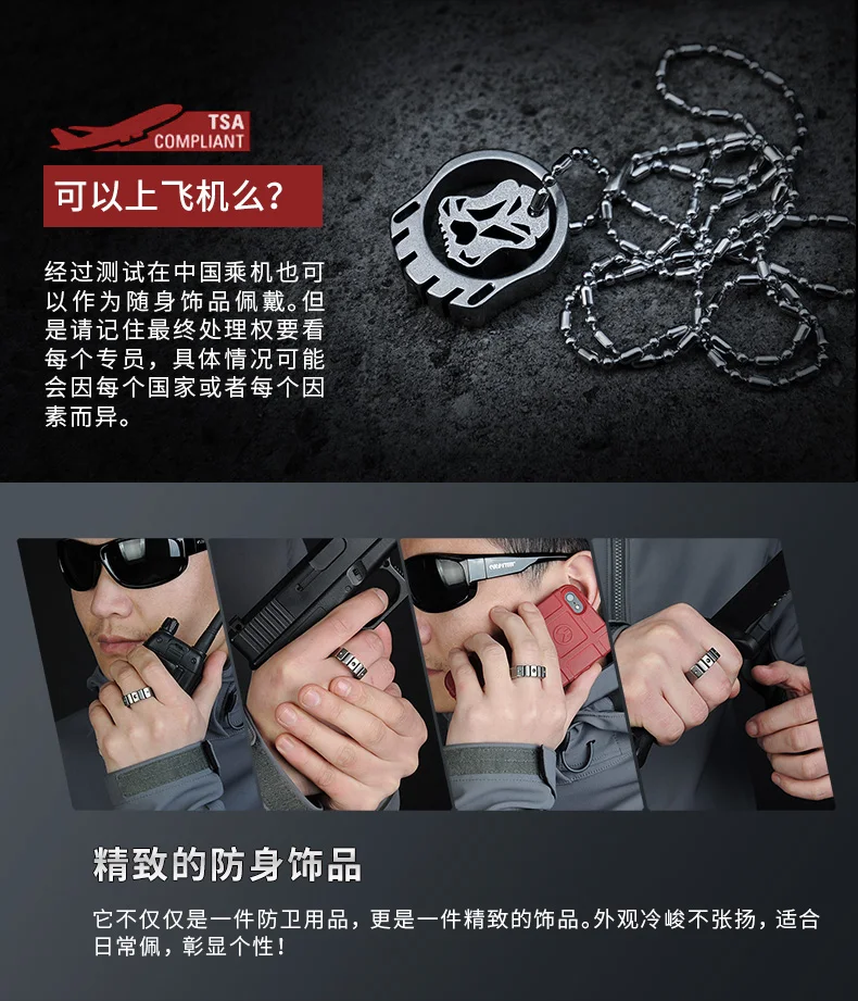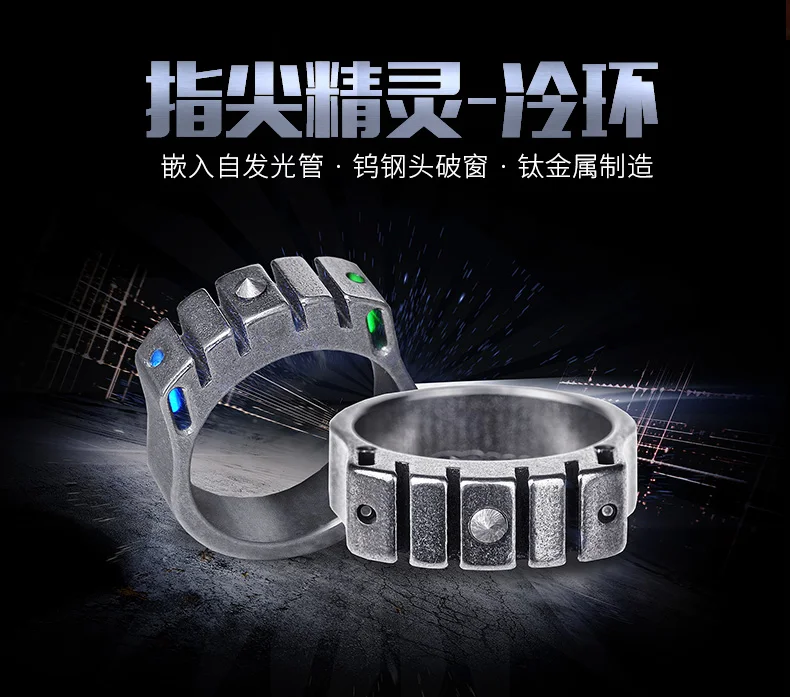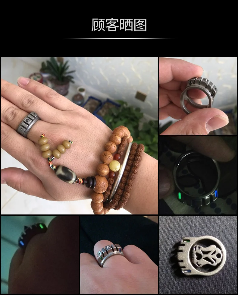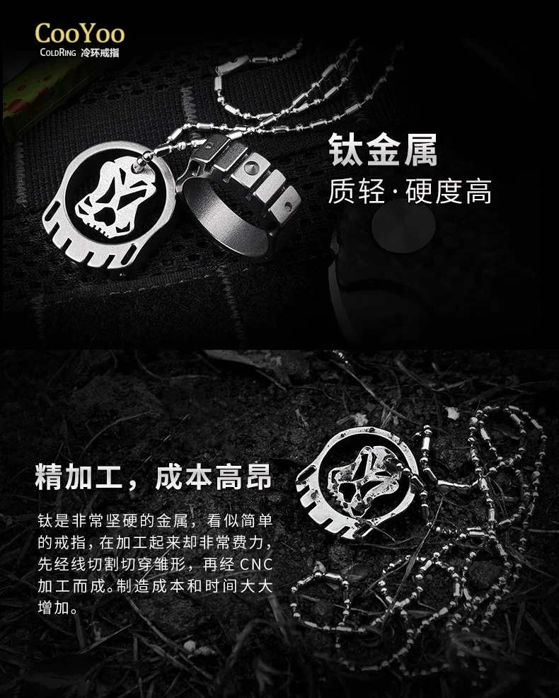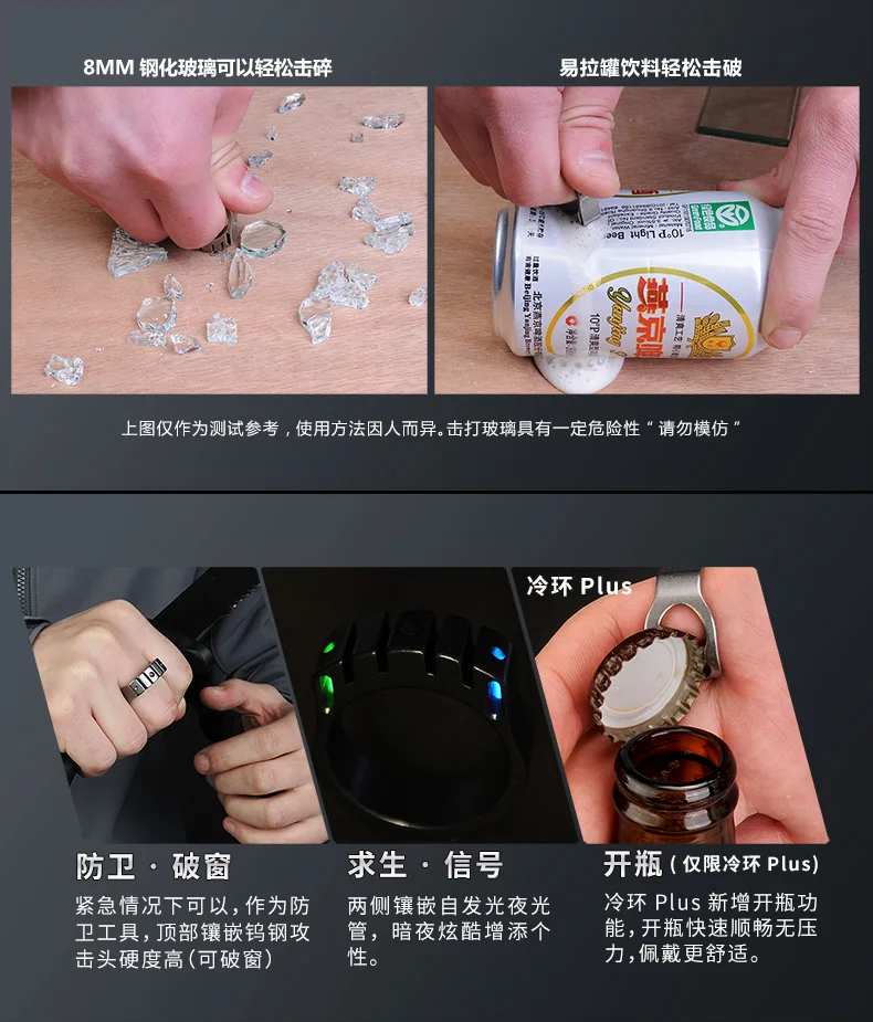 CooYoo-anillo frío/frío Plus, anillo de autodefensa, anillo de aleación de titanio Edc, autoluminoso, con incrustaciones de titanio, Cabeza de Acero de tungsteno