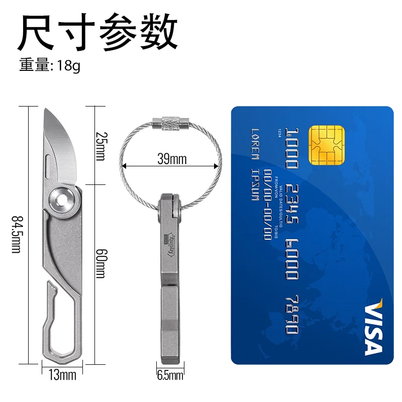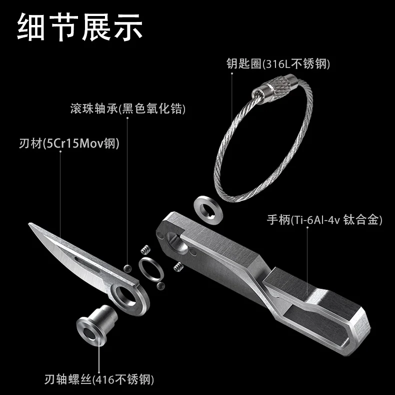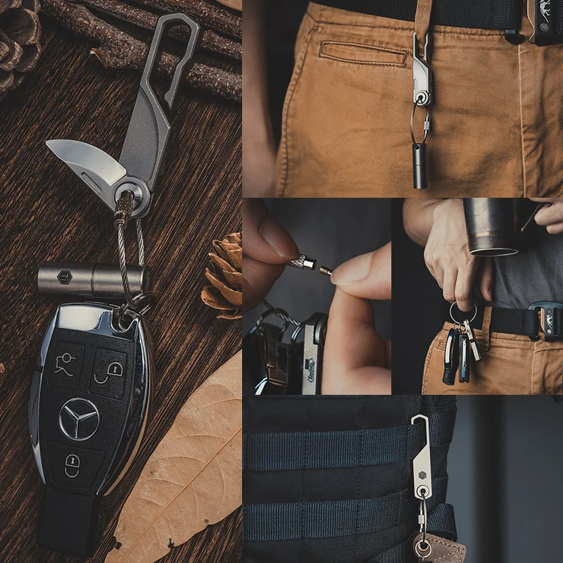 CooYoo KK00 Mini cuchillo de aleación de titanio Edc para colgar rápidamente, llavero portátil multiusos