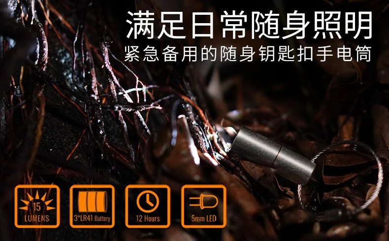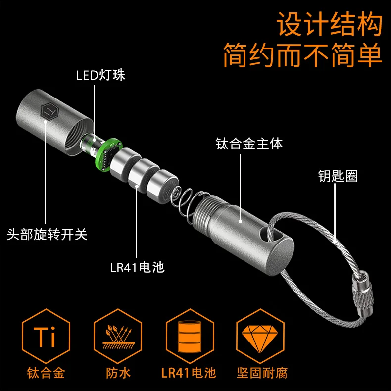 Cooyoo-Mini llavero de aleación de titanio KF00, linterna pequeña Edc, interruptor giratorio de cabeza de brillo ligero y portátil de 15 lúmenes