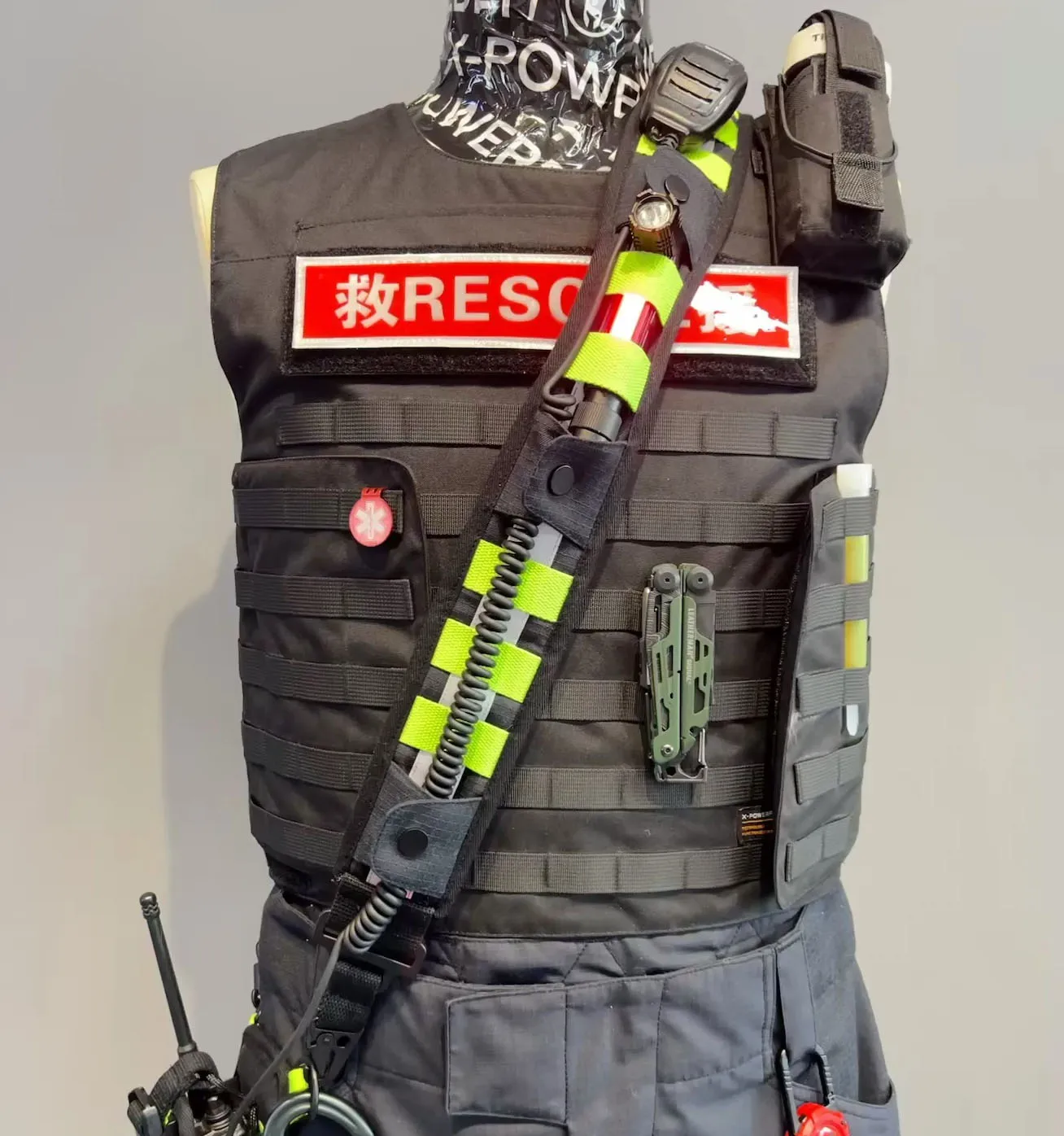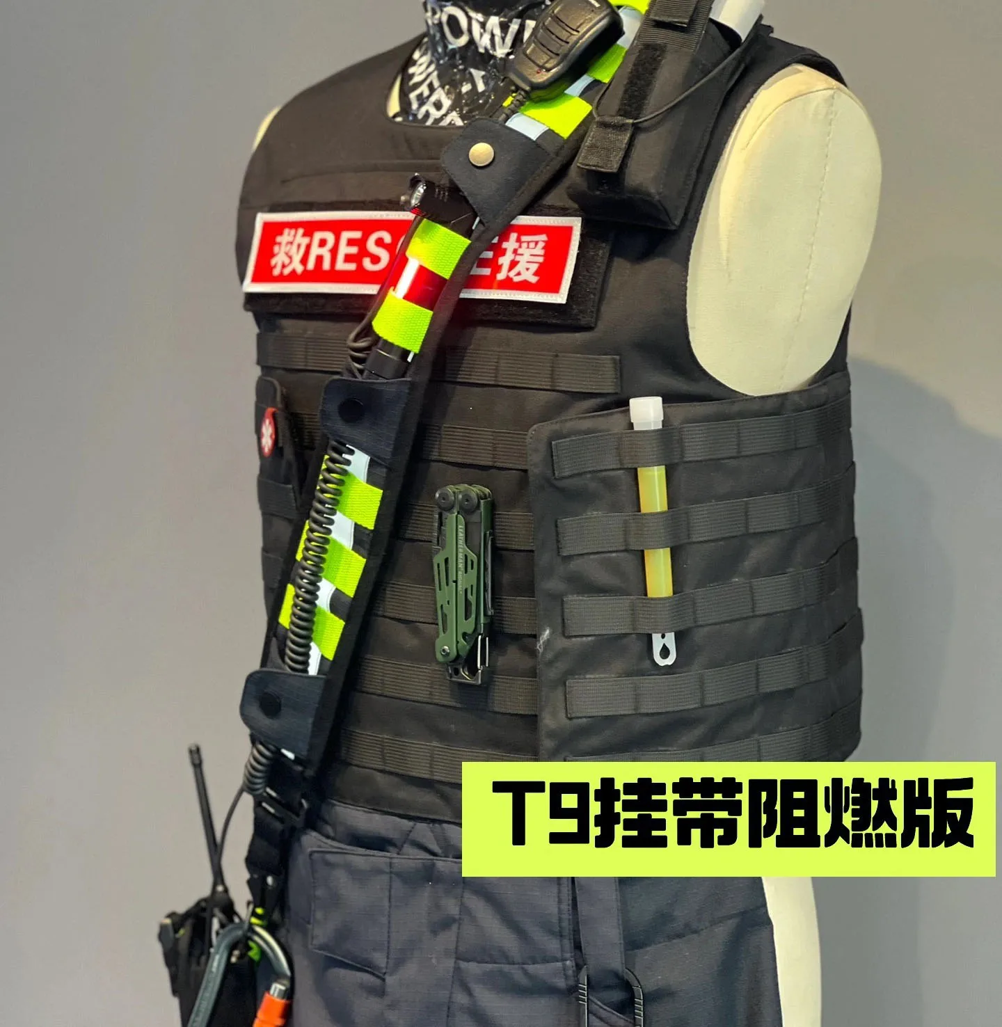 Cordón de bombero T9, correa de hombro azul llama, función de cinturón de equipo de rescate para comunicación, walkie-talkie, bolsa de Radio