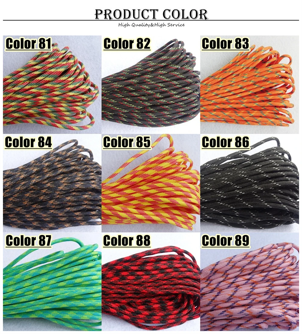 Cordón de paracaídas Paracord de 100 pies, 550, Mil Spec tipo III, núcleo de 7 hebras para escalar, acampar, hebillas, pulsera 81-120, 1 ud.