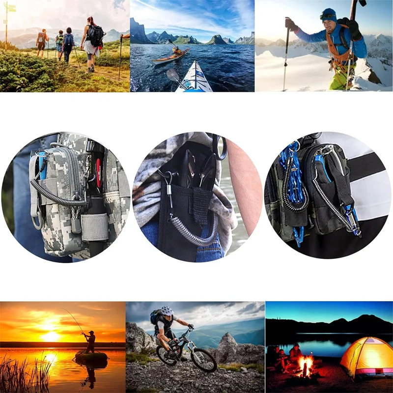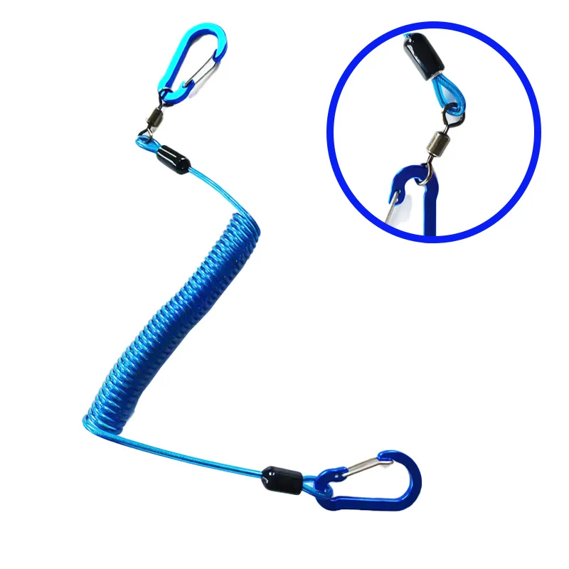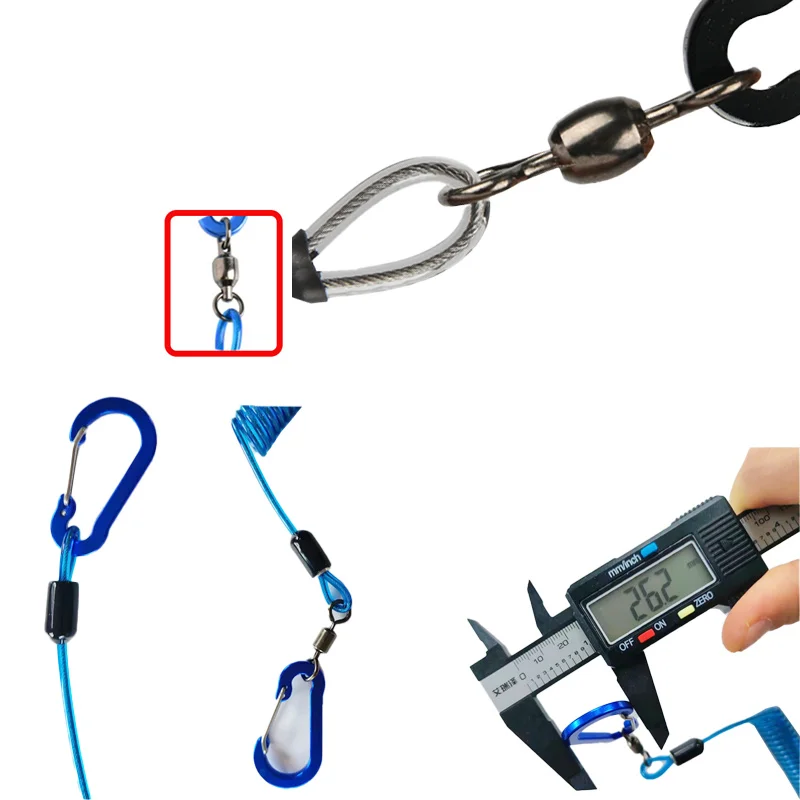 2.[Sin enredos] unido con mosquetón de aluminio resistente, clip de langosta fuerte y rotación giratoria de barril de 360 °, el cordón de la herramienta nunca causa bobinado y es ideal para conectar tijeras de pesca, alicates de pesca removedor de anzuelos.