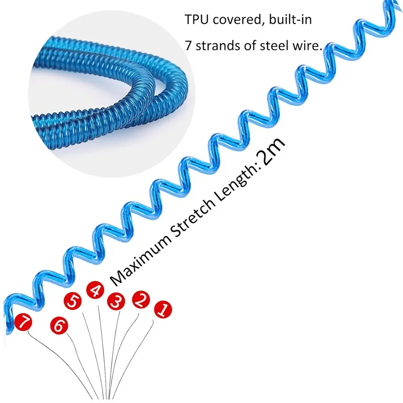 1.[Dureza exclusiva] Cable de acero de 7x7 hilos incorporado, el diámetro total con revestimiento de TPU es de 2,3mm, mientras que el diámetro interior del núcleo de metal es de 2,8mm.