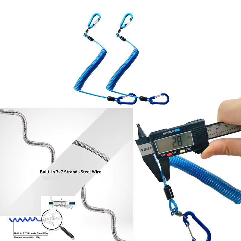 Cordón de sujeción para caña de pescar, correa de paleta, cordón en espiral retráctil de alta resistencia para herramientas de pesca/Cañas/paletas