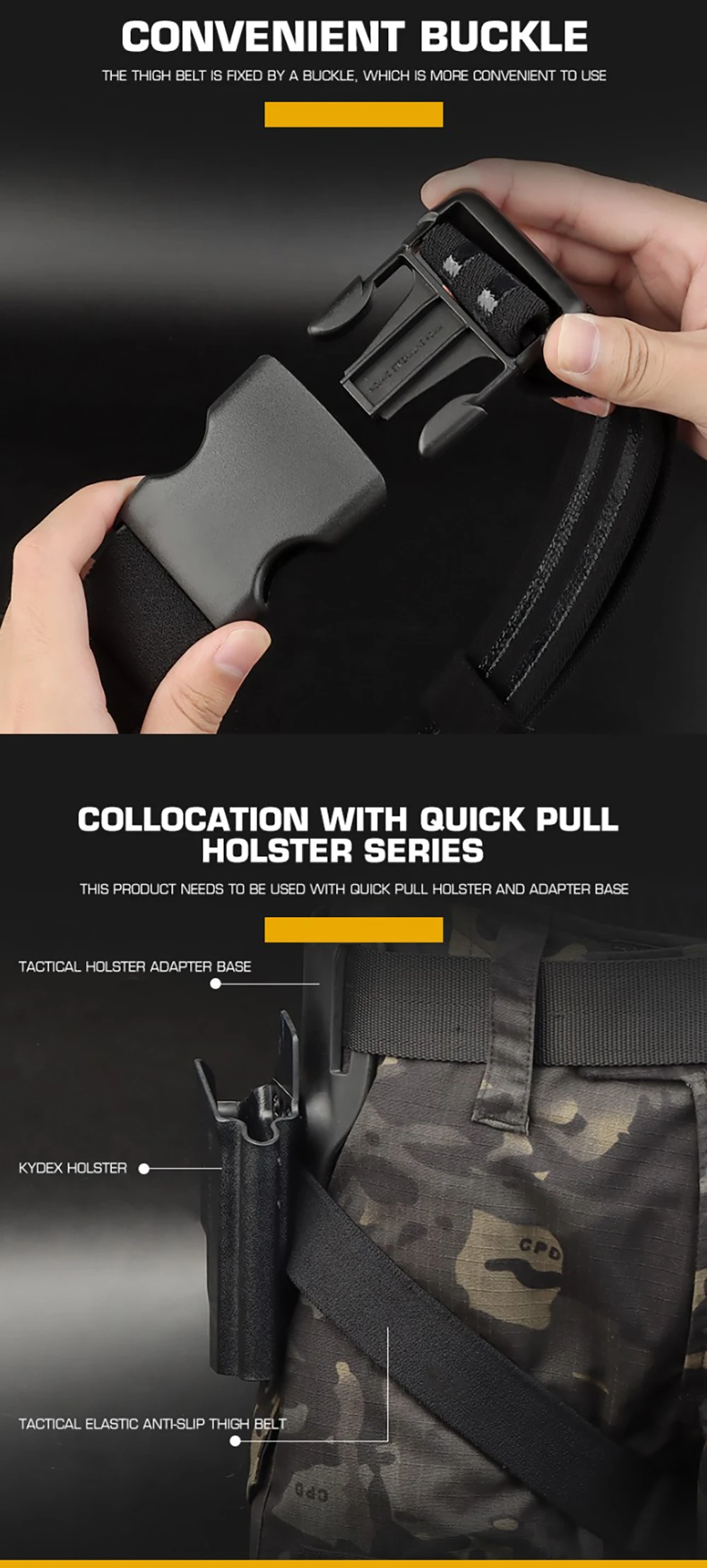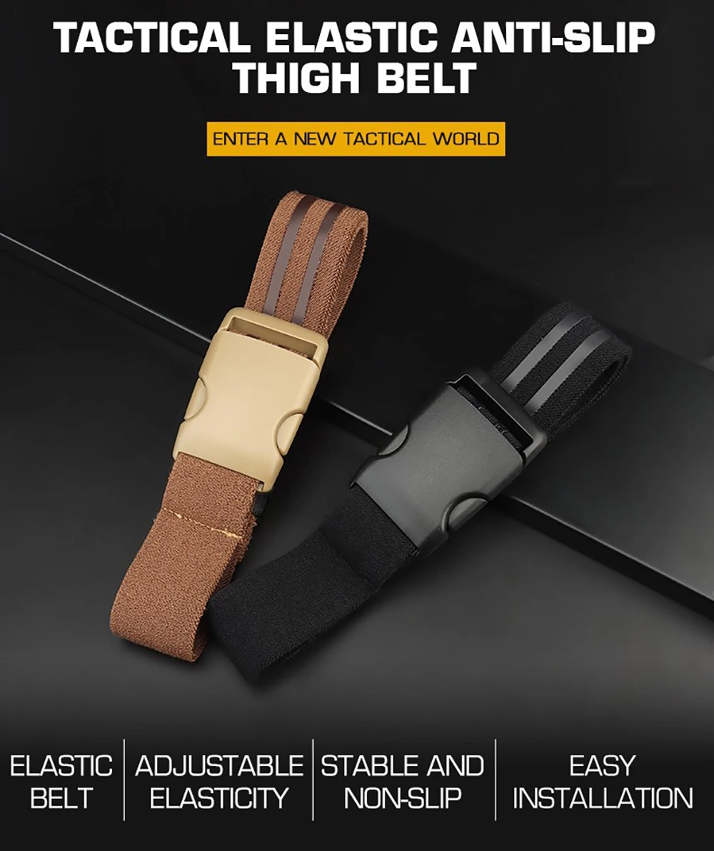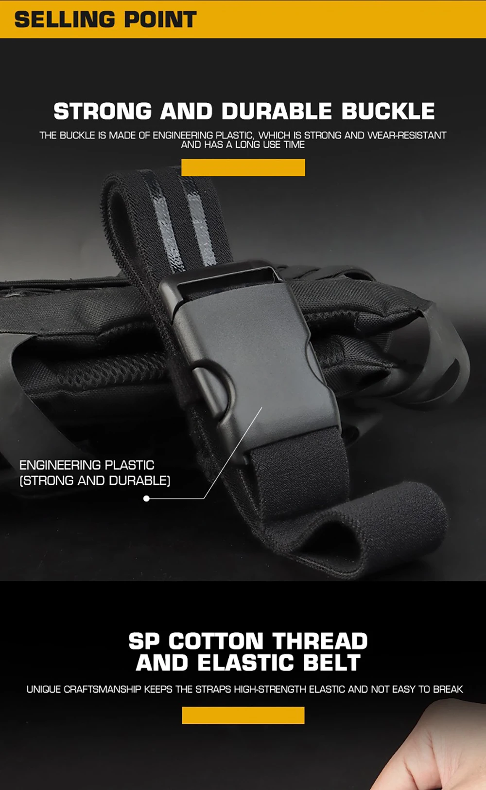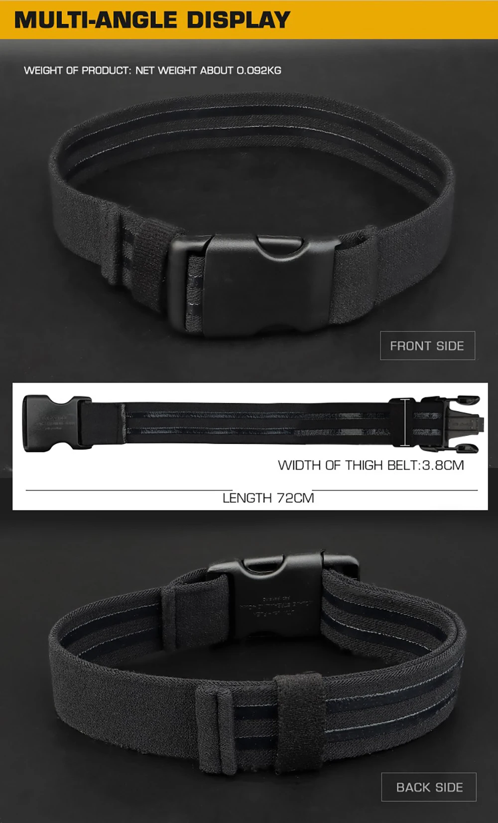- Banda elástica ajustable para el muslo con hebilla de liberación rápida, fácil de poner y quitar.