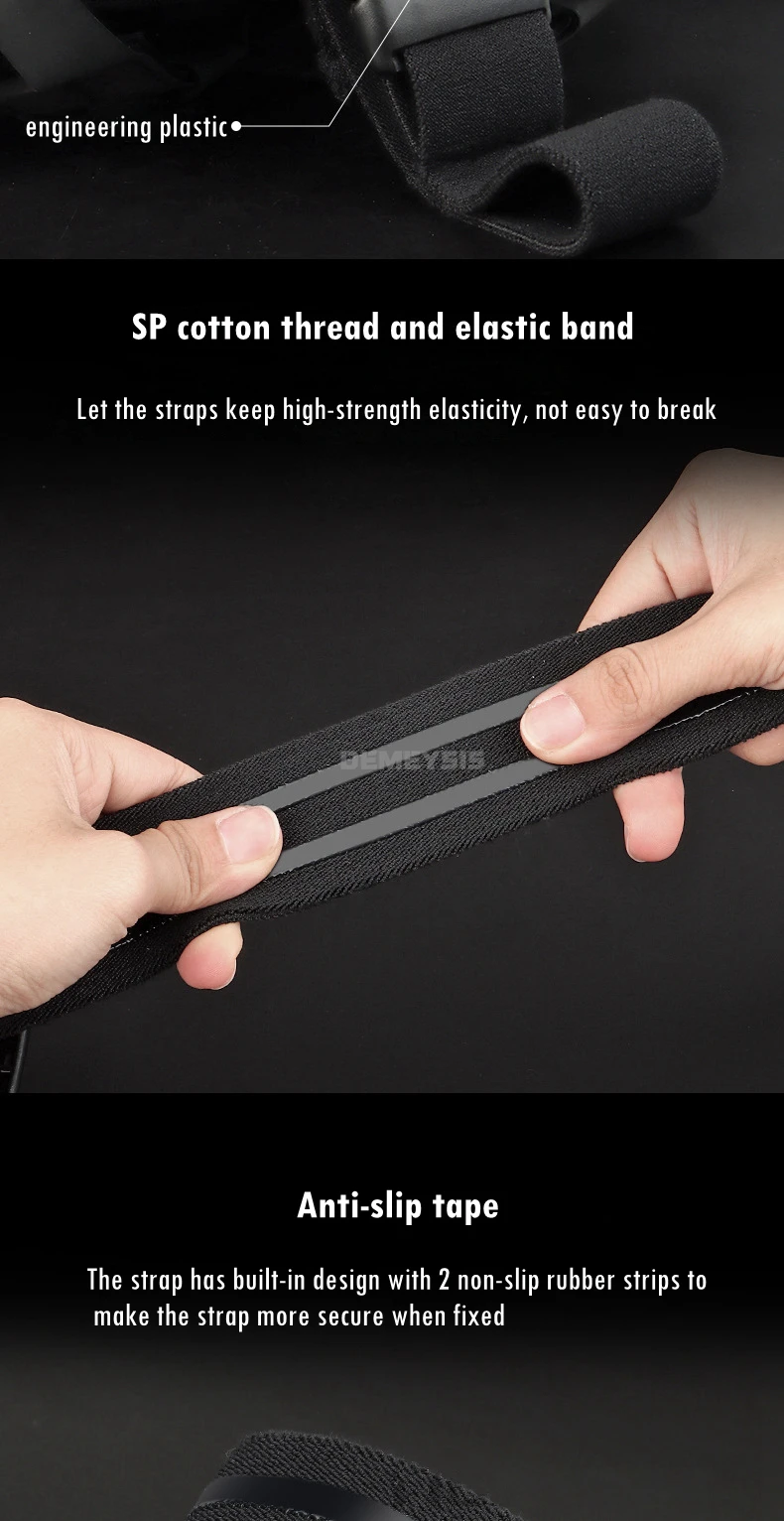 ● Correa de pierna totalmente ajustable para adaptarse a la mayor parte del muslo.