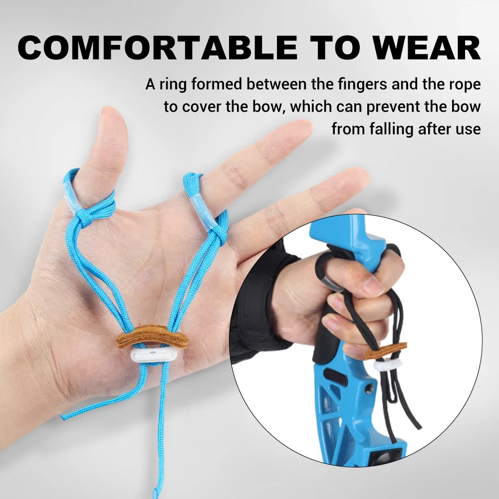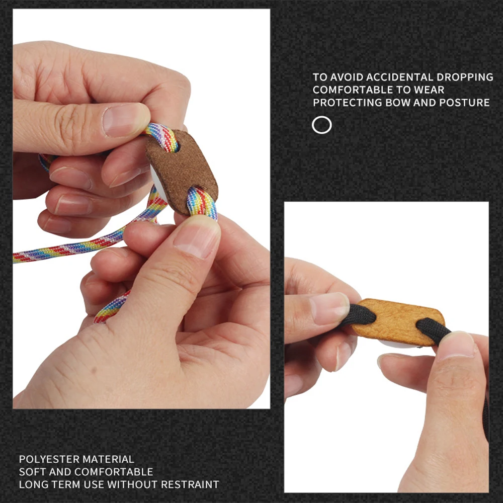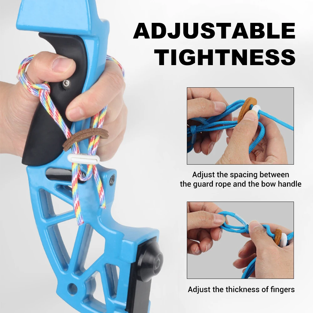 El cabestrillo de tiro con arco mejora la estabilidad del agarre, especialmente para usuarios principiantes, se adapta de forma segura a manos medianas/grandes con una longitud óptima e incorpora ajustadores que equilibran la fuerza y la flexibilidad del agarre.