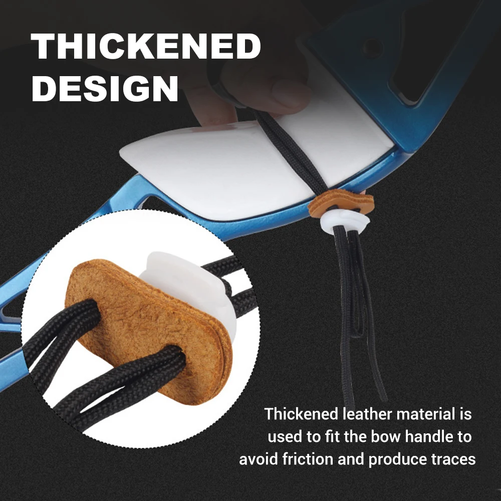 Fácil de instalar, ajustar y apretar incluso para principiantes, la correa para el dedo del arco requiere un tiempo de ajuste mínimo, lo que permite un uso cómodo para arcos recurvos y juegos de competencia de tiro con arco.