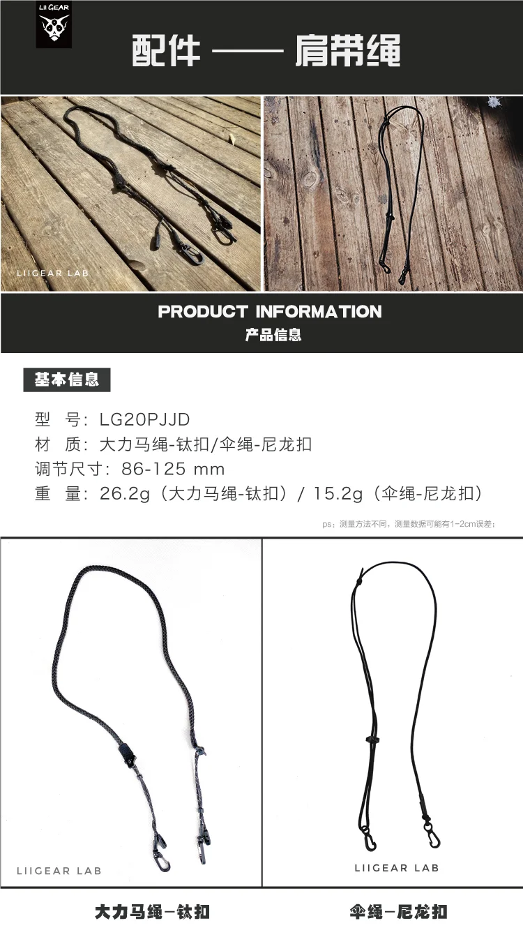 Correa de hombro Cuerda Hebilla de titanio Correa de hombro Cuerda Paraguas Cordón Mochila Cuerda