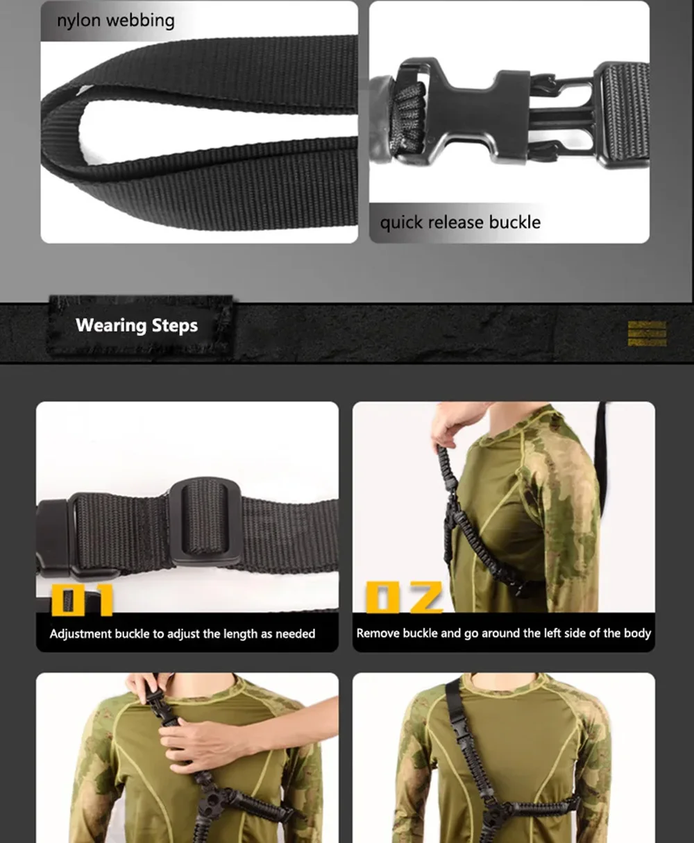 Correa de hombro de un solo punto para exteriores, cuerda de pistola CS, cuerda de seguridad diagonal, cinturón de camuflaje unisex