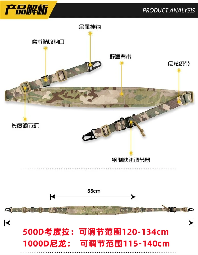 Correa de liberación rápida de ajuste rápido táctico para exteriores, cuerda cruzada de camuflaje de punto simple y doble