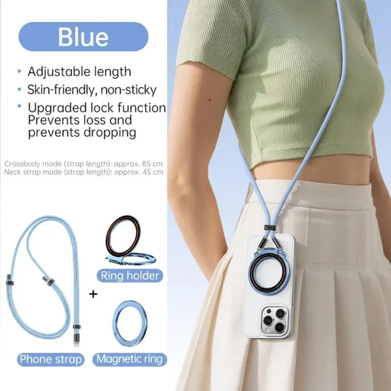 Características:OOTDTYLa correa para teléfono general con diseño desmontable combina un soporte para teléfono seguro, una correa ajustable para el cuello/hombro y un soporte con anillos giratorios de 360 grados, con imanes N52 para un fuerte agarre en la correa para teléfono de dispositivos de 4,5 7", soporte para anillos para teléfono).