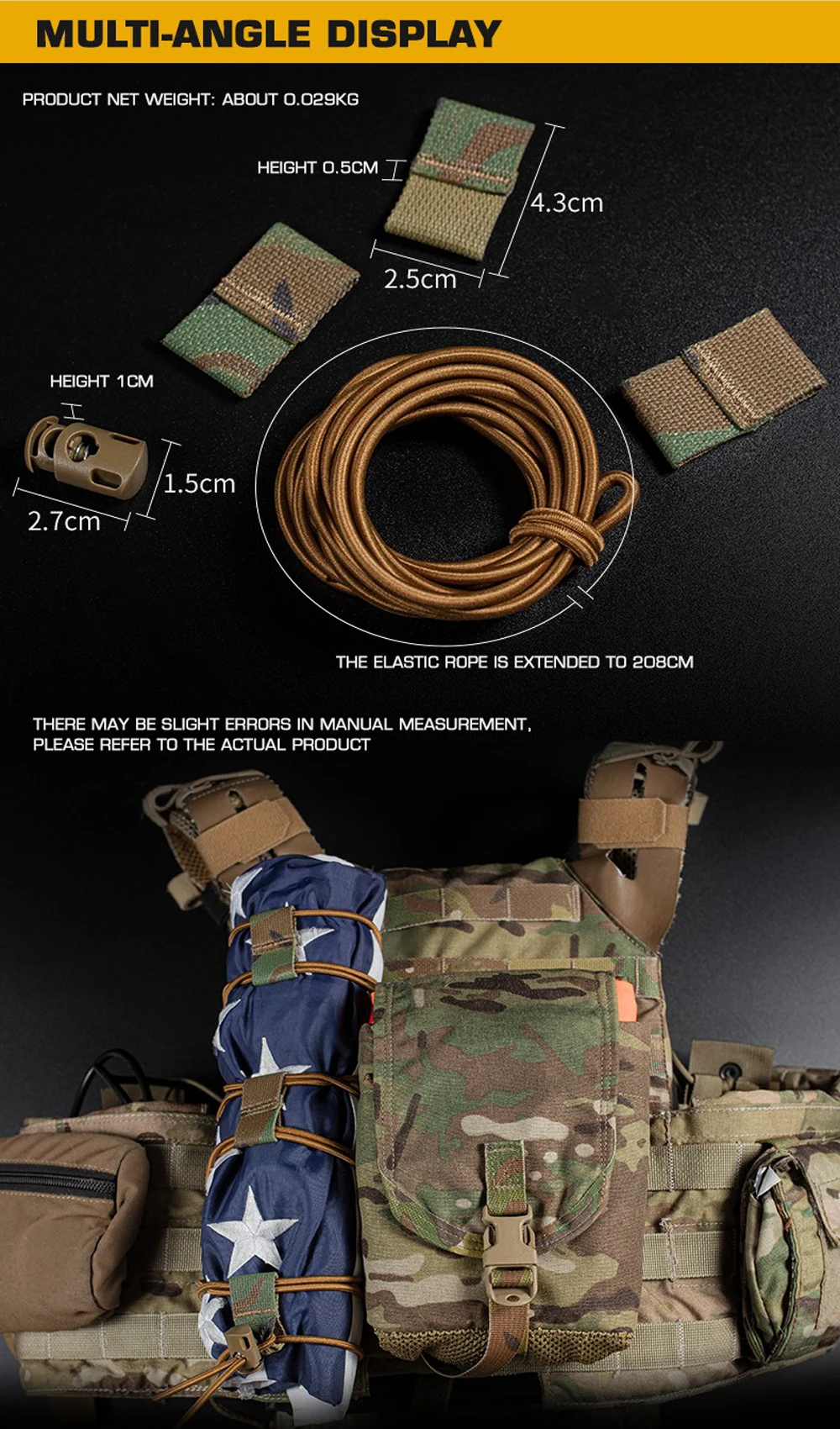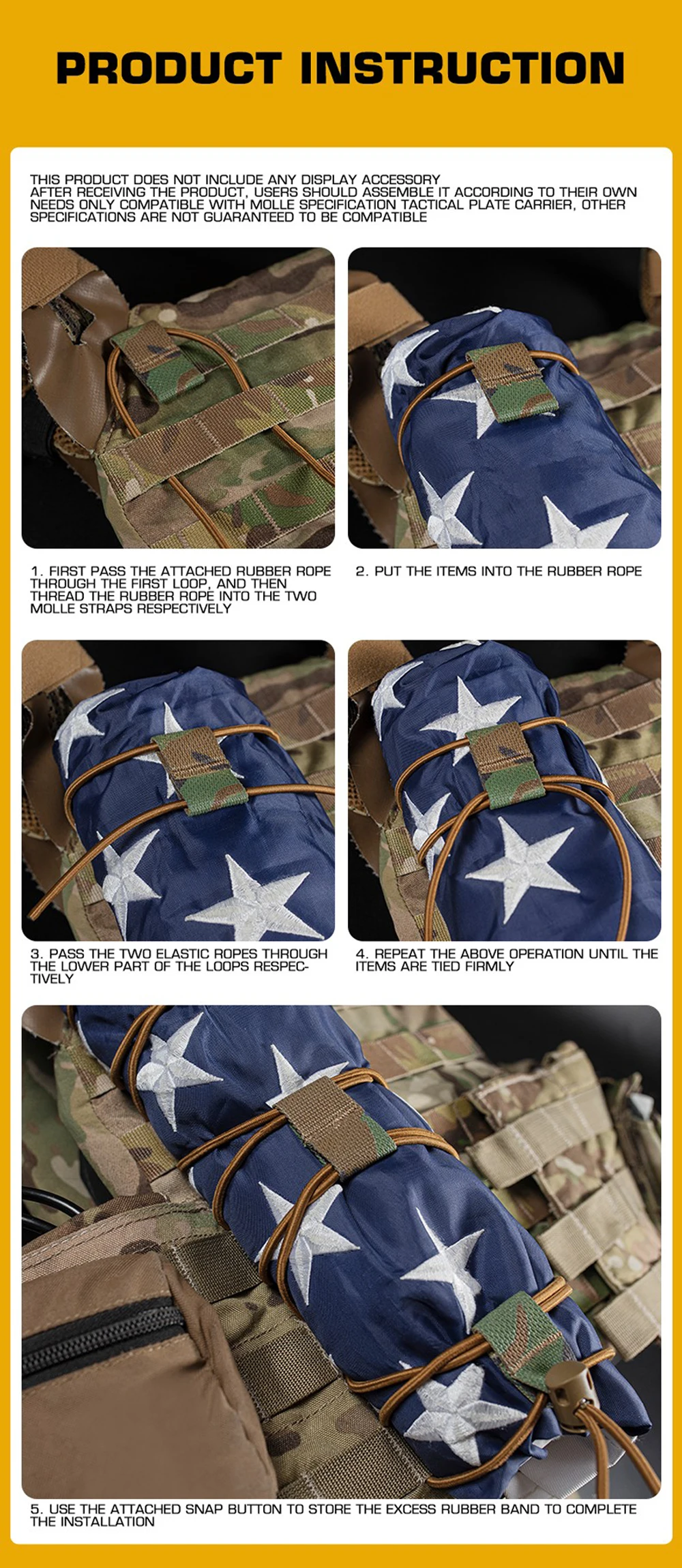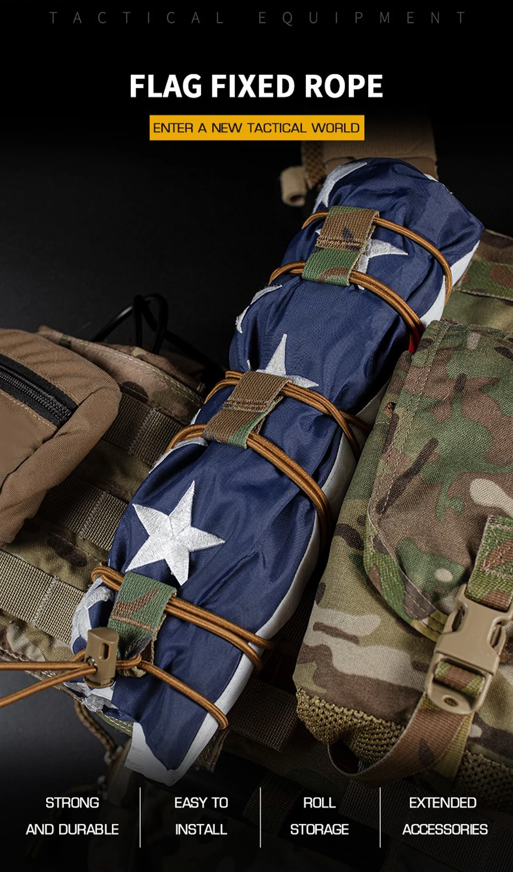 Correa de sujeción elástica con bandera nacional táctica/cuerda de sujeción con bucle de transporte de gloria antigua/portador de placa de chaleco almacenamiento de tiendas de campaña al aire libre