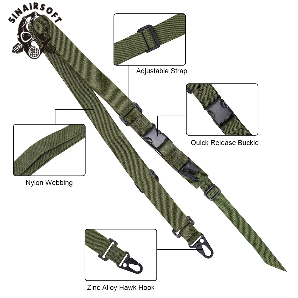 2 El diseño de la correa de 3 puntos permite una distribución uniforme del peso de la pistola en su hombro, ajustable para permitirle ajustar la longitud más cómoda, adecuado para todos los rifles con eslinga giratoria o gancho.