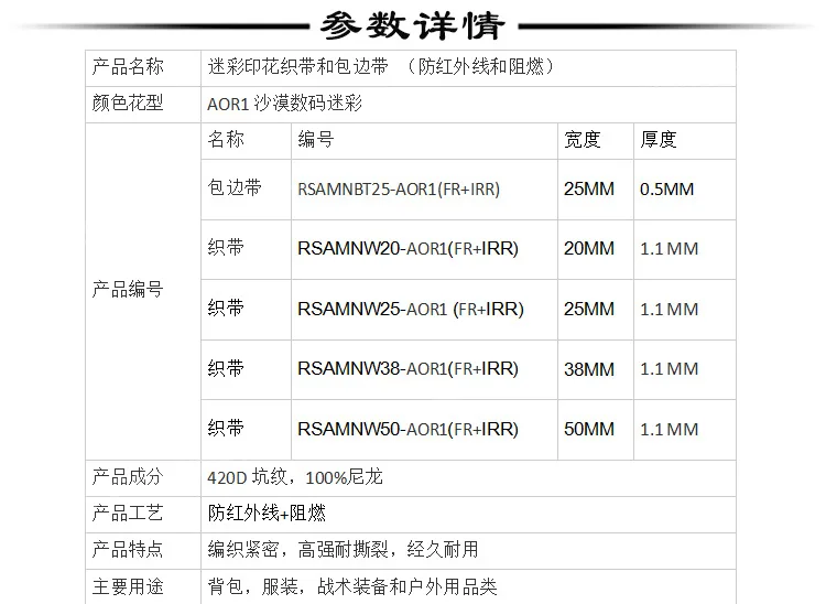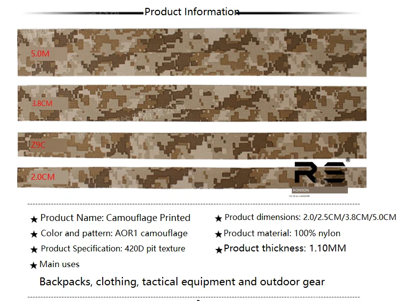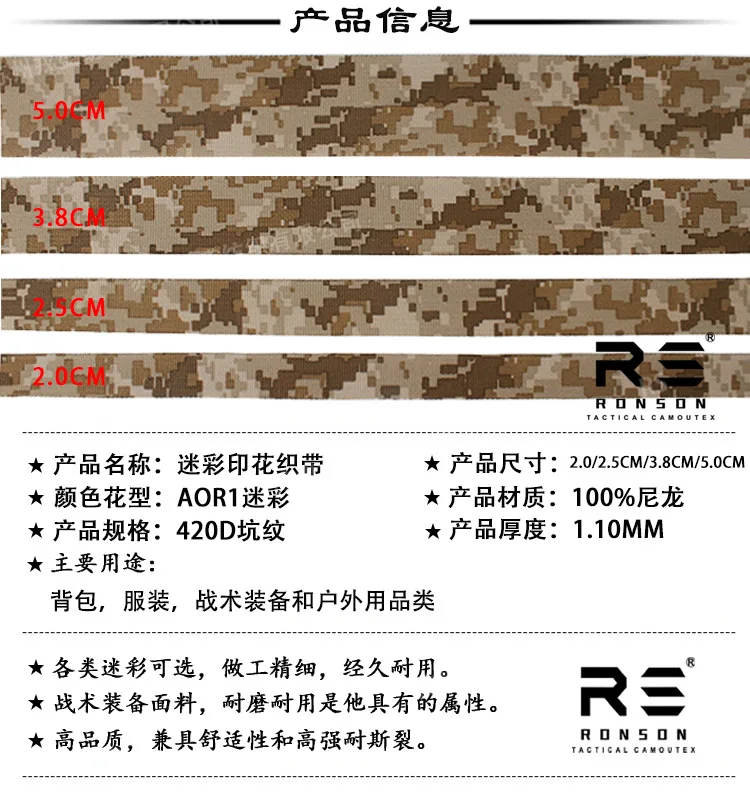 Correas estampadas de nailon de camuflaje AOR1, 2,5-5cm de ancho, retardantes de llama, antiinfrarrojos, correas para equipos tácticos DIY