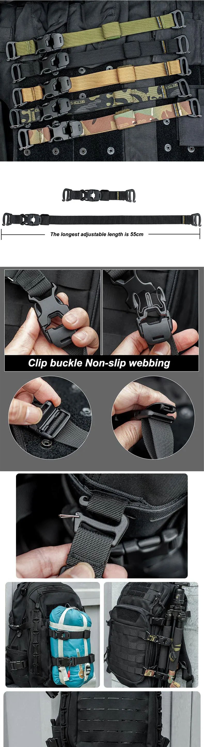 Correas MOLLE con Clips de hebilla Correas de compresión para equipo táctico Mochila Accesorios Correa Correas de equipaje Herramientas
