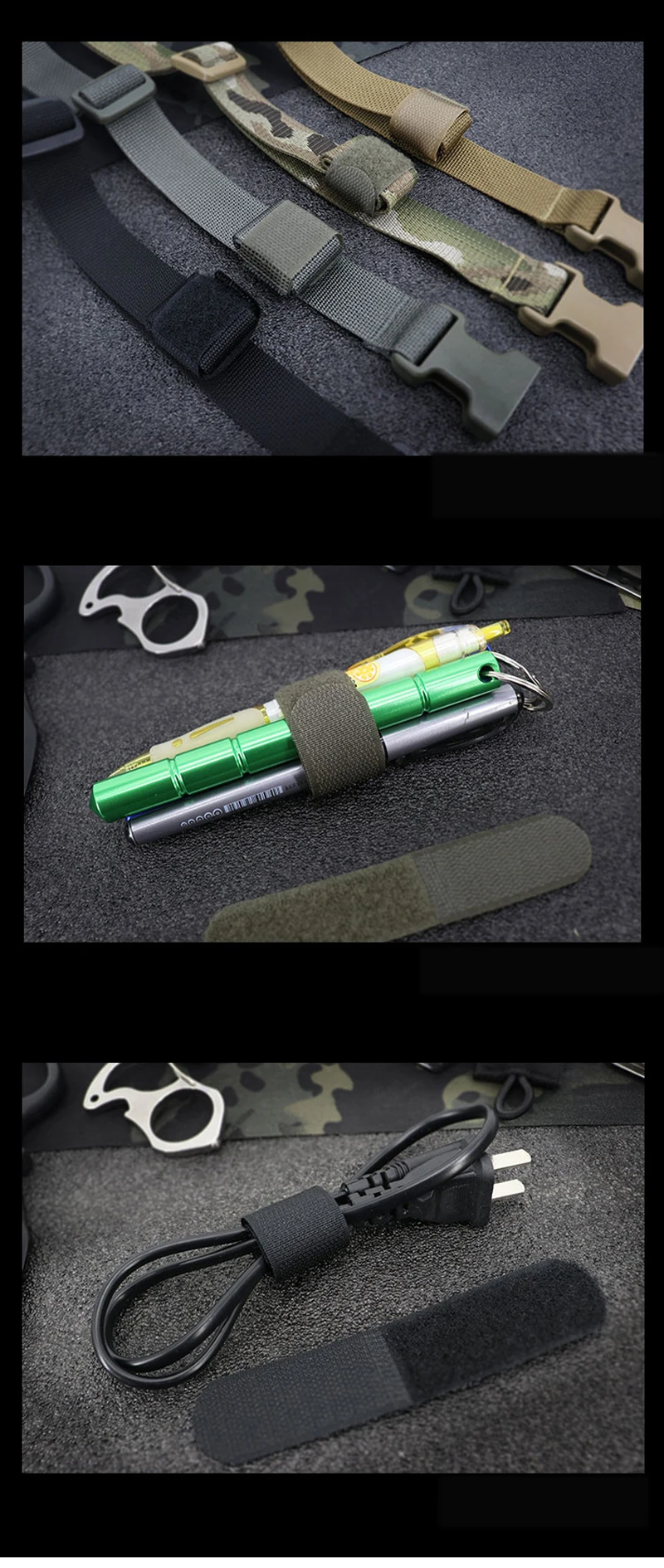 Correas tácticas Molle de nailon Bridas para cables reutilizables con correas de gancho y bucle Organizador ordenado para organizar mochilas/cables/cables