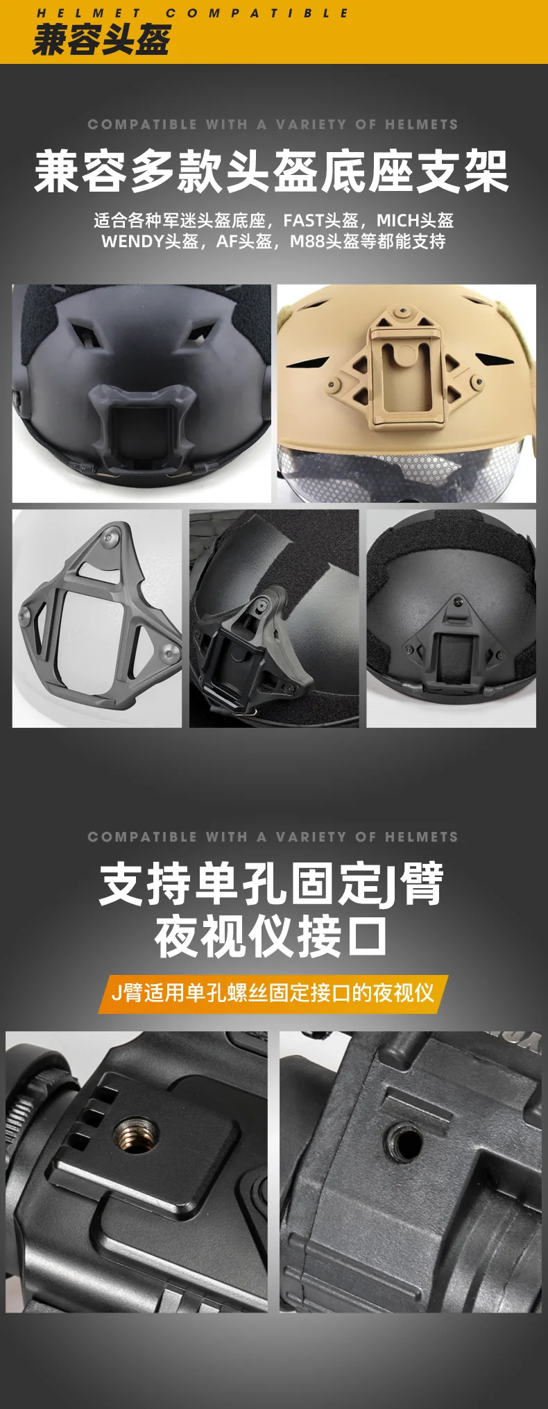 Adecuado para todo tipo de bases de casco de ventilador militar, casco FAST, casco MICH WENDY, casco AF, casco M88, etc.