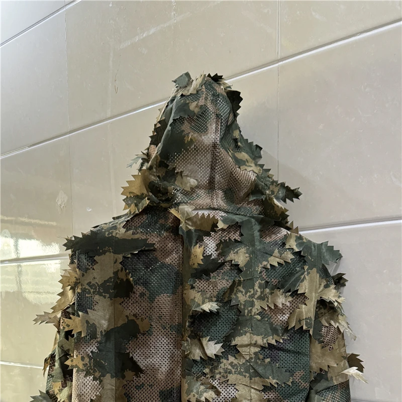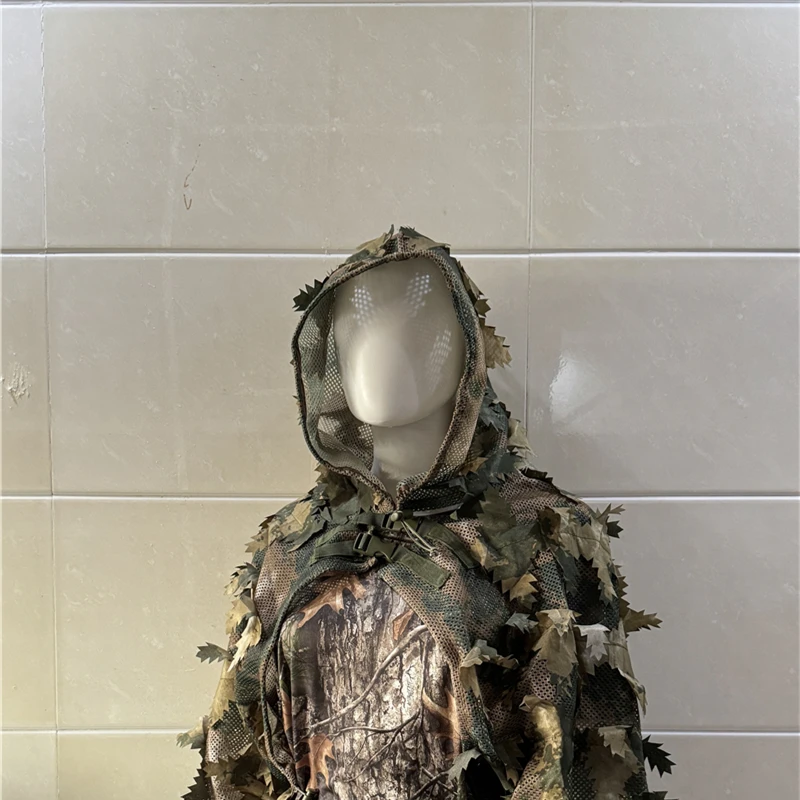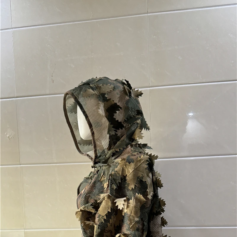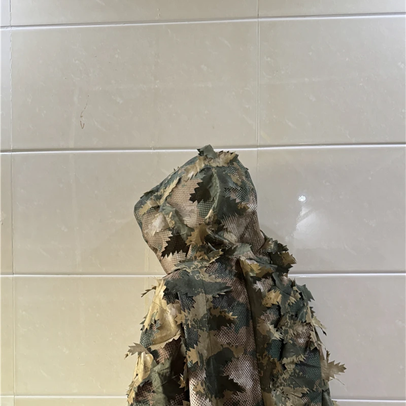 Este traje ghillie tiene un diseño vívido de hojas muertas que imita el entorno natural.Ayuda