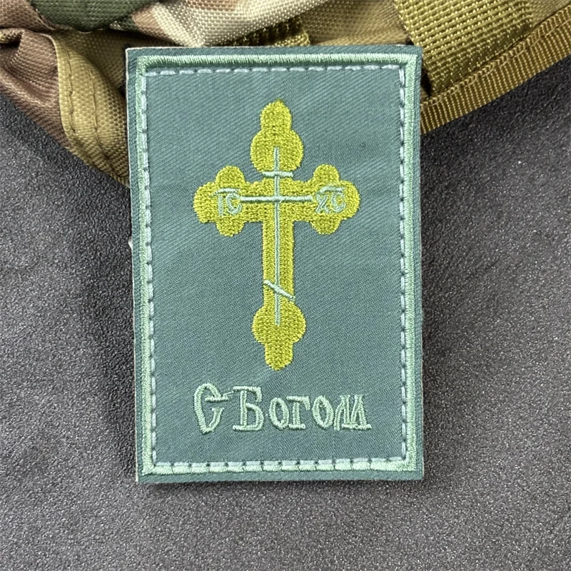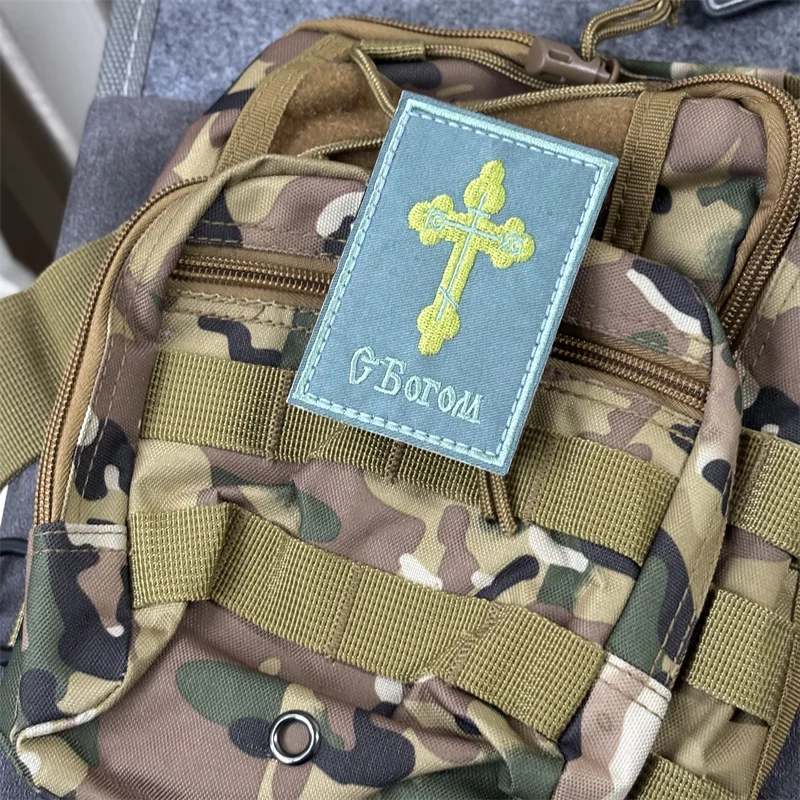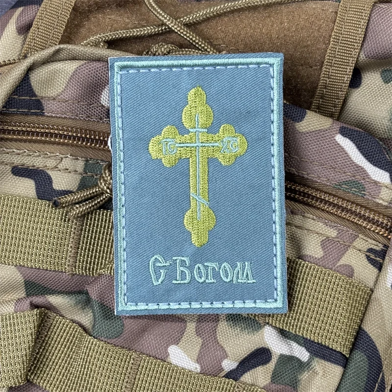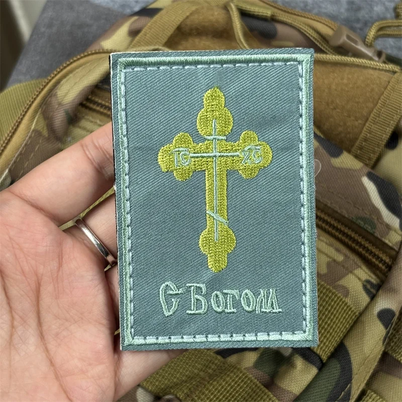 Cruz ortodoxa rusa "May God Be with You", insignias de moral táctica, parche bordado militar con gancho, mochila para ropa