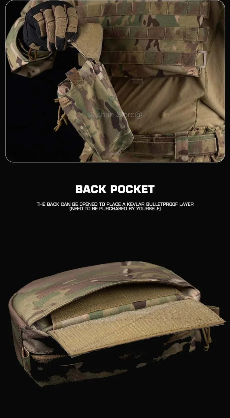 Bolsillo trasero:La parte posterior se puede abrir para colocar una capa a prueba de balas de Kevlar. (debe ser perseguido por usted mismo)