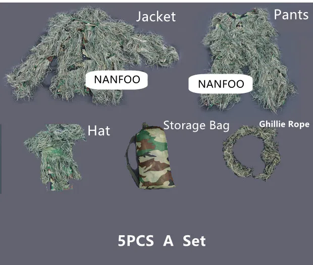 1* Ghillie Suit( Jacket+Pants+Hood+Wrap Rifle+Storage Bag )