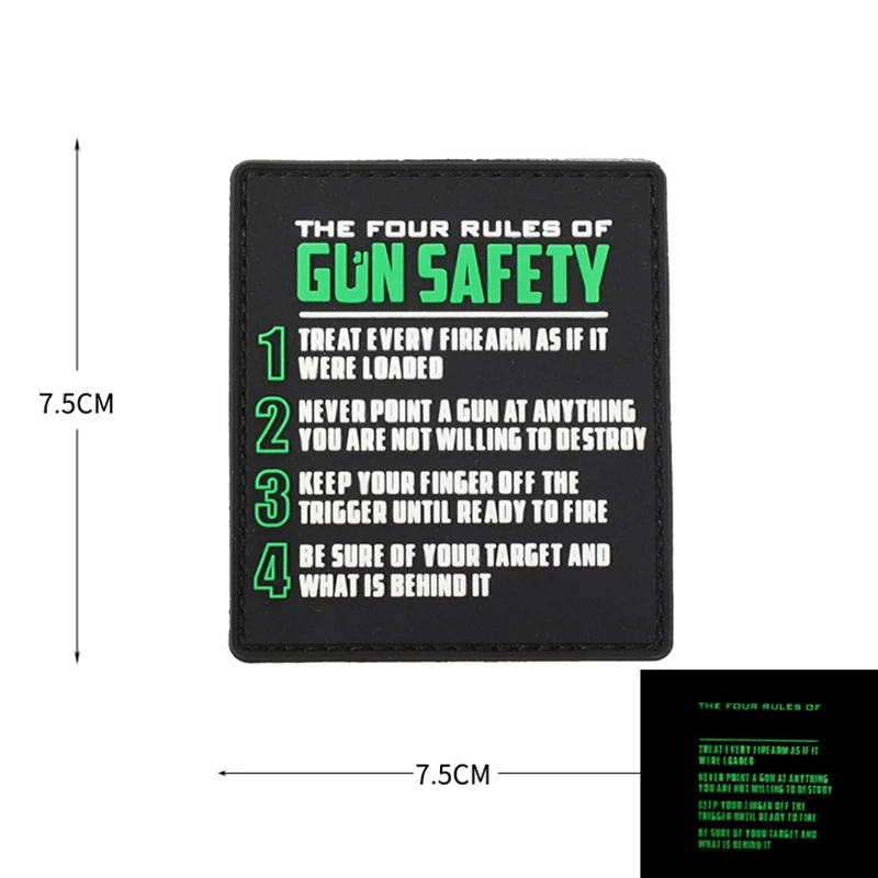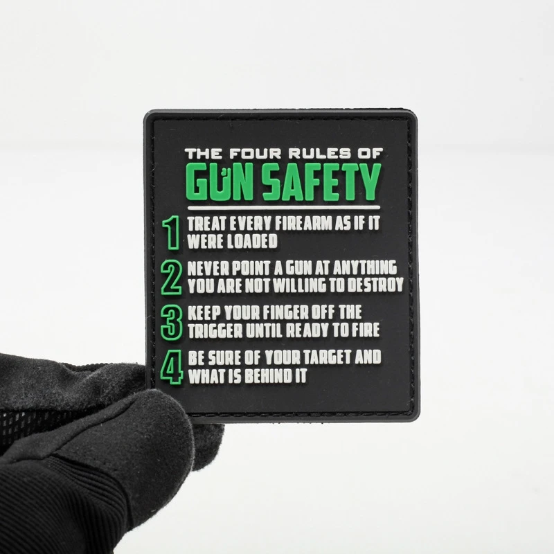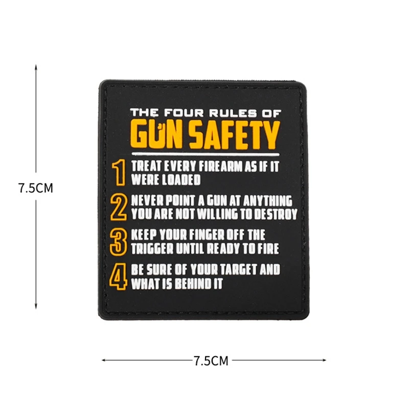 Los cuatro principios de la pistola, parches de gancho y bucle de seguridad, insignia de moral de PVC, mochila, decoración de ropa, parche adhesivo