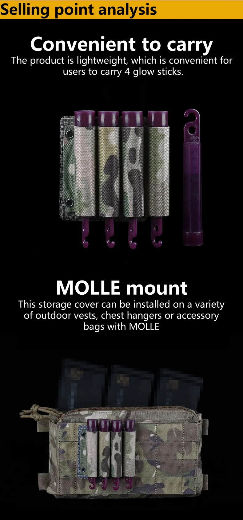 Cubierta de almacenamiento de palo fluorescente de rescate de supervivencia para acampar al aire libre, accesorios para equipos al aire libre, sistema MOLLE de montaje