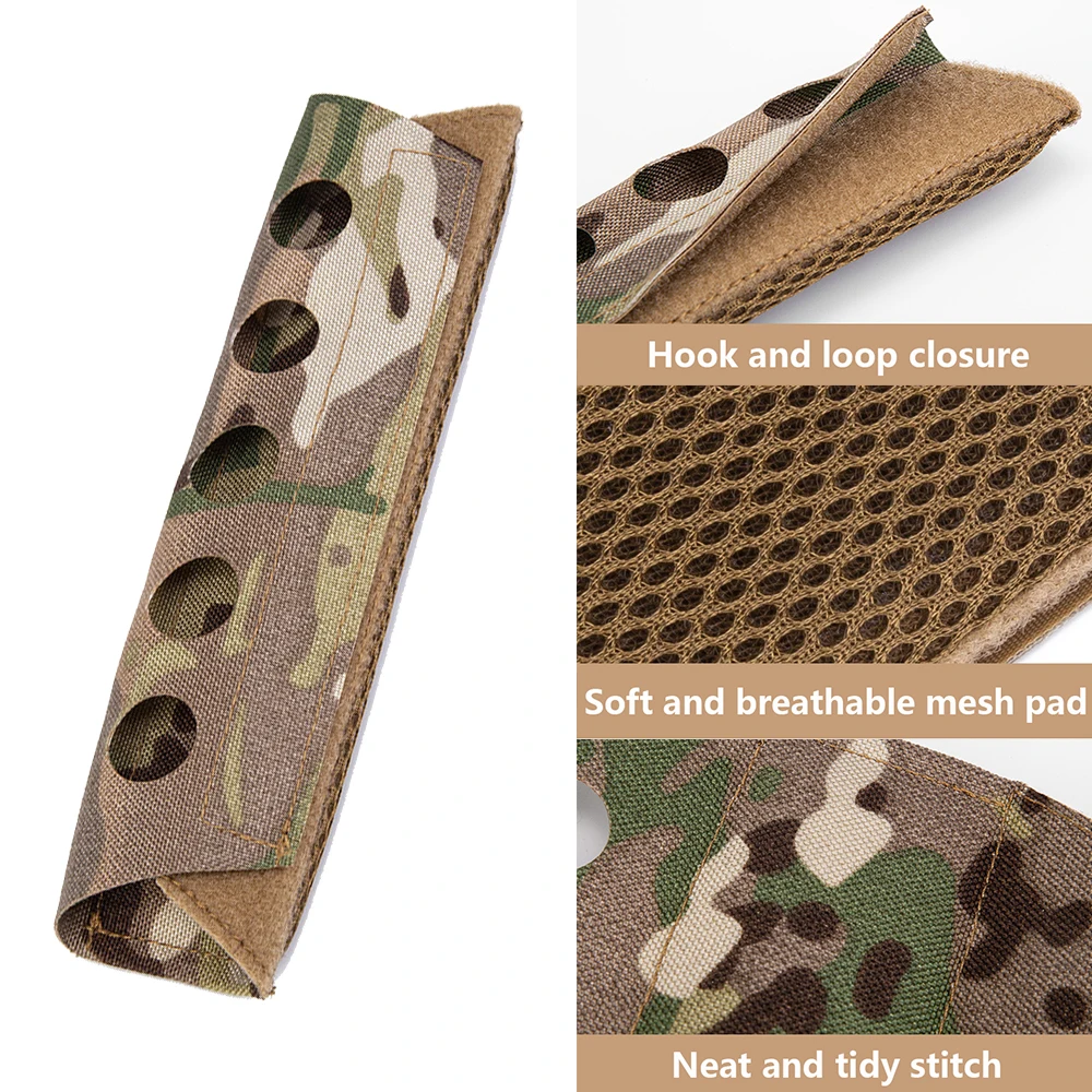 La cubierta táctica de los auriculares está hecha de nailon ligero cortado con láser. El lado de la pieza en contacto con la cabeza es una almohadilla de espuma de malla suave y transpirable que garantiza una gran comodidad y protección sobre la cabeza. Y las ranuras redondas en la parte superior de la cubierta de los auriculares permiten la gestión y organización de los cables de radio. Puede conectar los auriculares a un mosquetón a través de las ranuras redondas cuando no esté en uso. La almohadilla de comunicaciones se adapta a la mayoría de los auriculares con una correa de 2 "o más pequeña, como MSA Sordin, Peltor Comtac, TCI Liberator y muchos más. La característica adicional es que puedes usarlo no solo como una funda táctica para auriculares, sino también como una almohadilla para correa de hombro de mochila, almohadilla para eslinga de pistola, almohadilla para correa de hombro para portador de placa, etc.