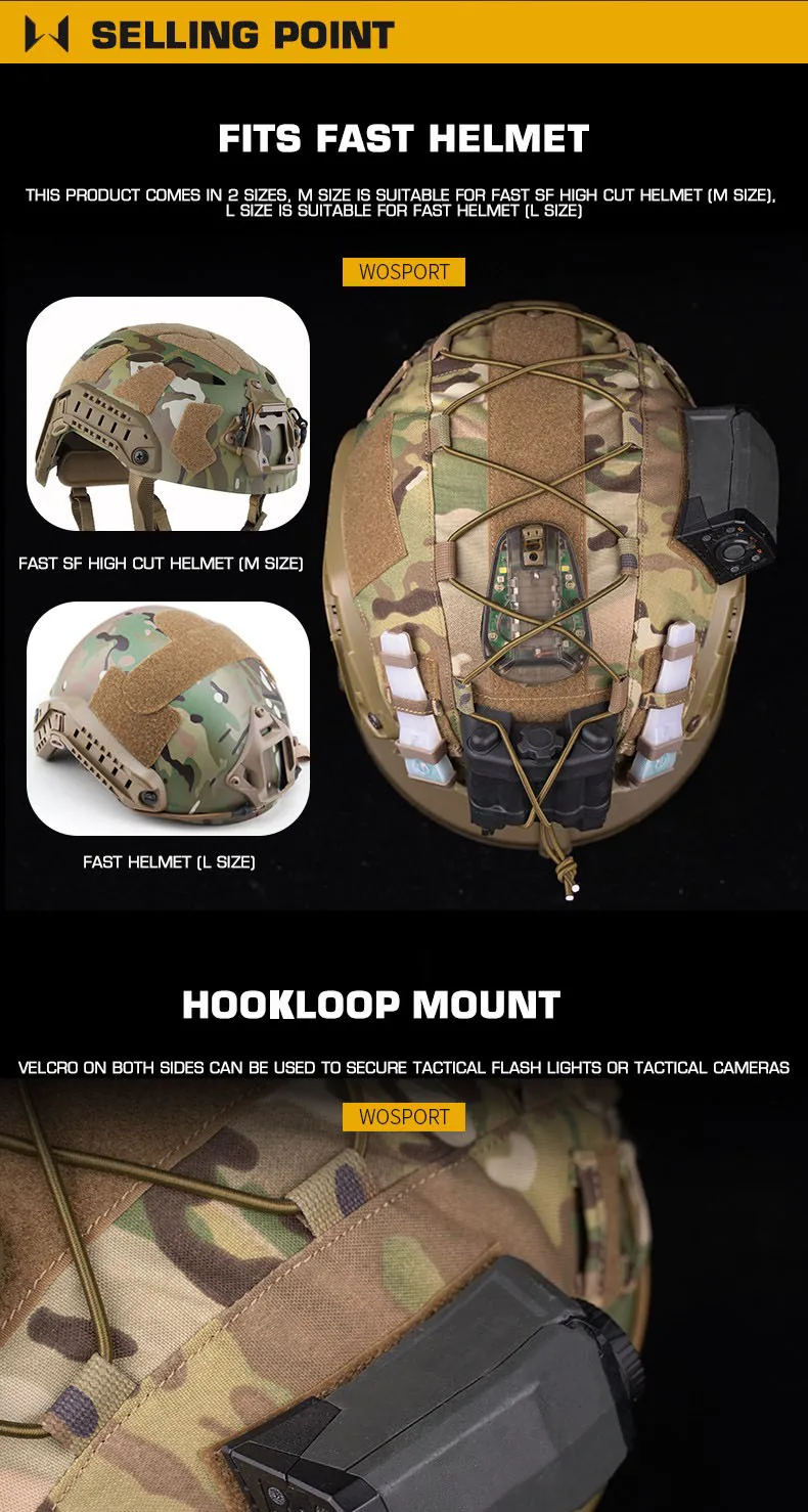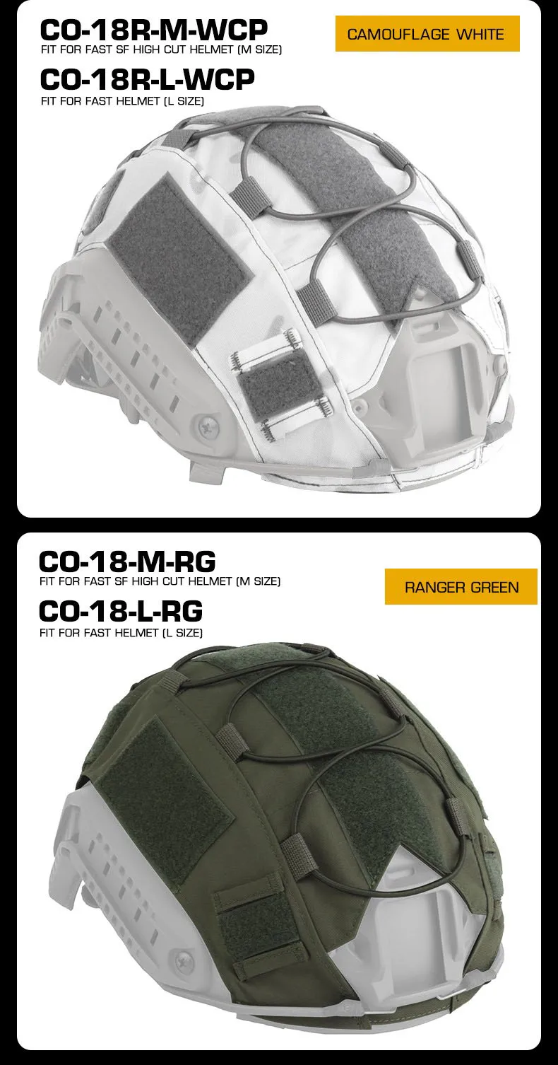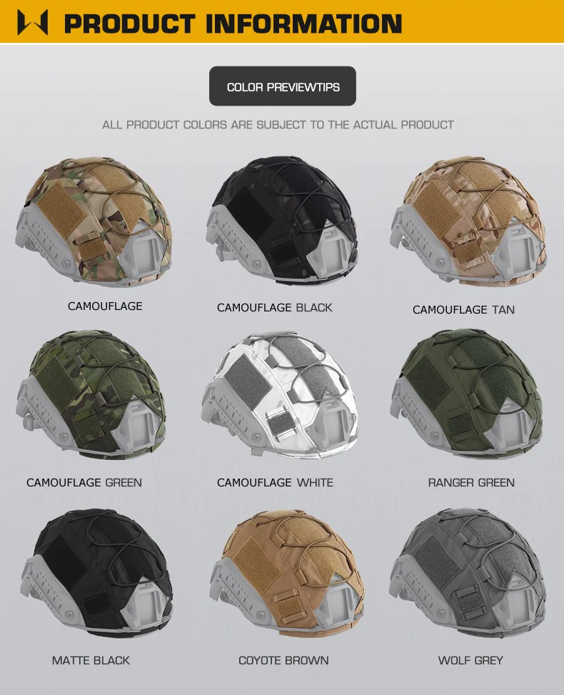 Nombre: Tela para casco RÁPIDO Marca: WOSPORT Color: Camuflaje negro/Camuflaje/Camuflaje verde/Camuflaje tostado/Camuflaje blanco/Negro/Marrón coyote Verde Ranger/Gris lobo Material principal: tela de nailon Escenarios aplicables: actividades de equipo, accesorios de cine y televisión, juegos tácticos.